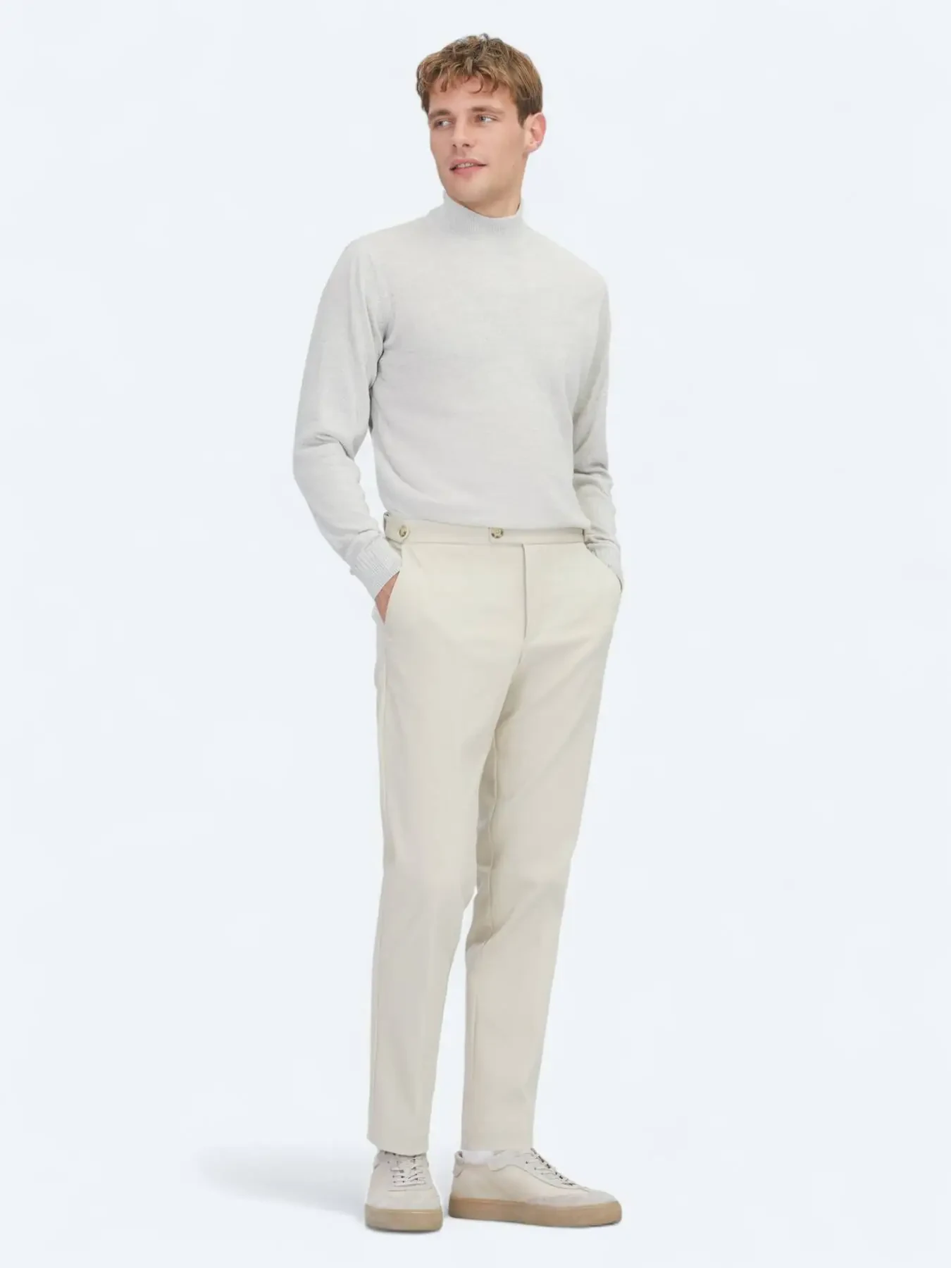 Açık Gri Yarım Balıkçı Yaka Jakarlı Yün Karışımlı Triko Kazak