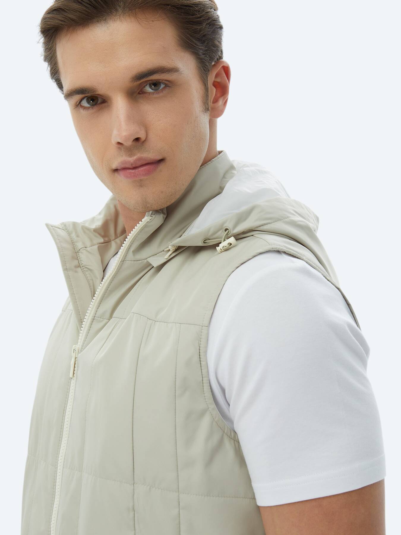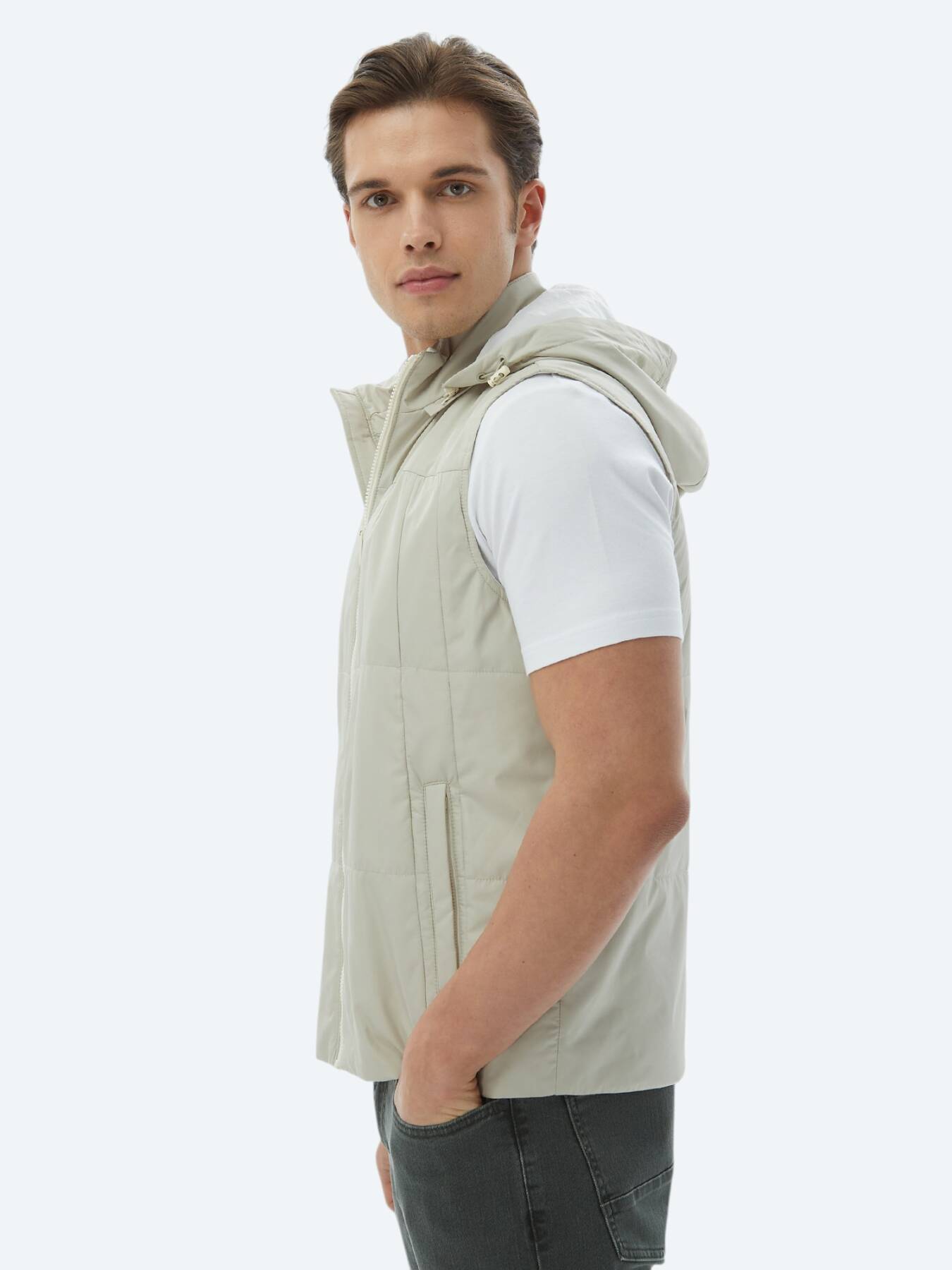Açık Haki Regular Fit Kapüşonlu Casual Dokuma Spor Yelek