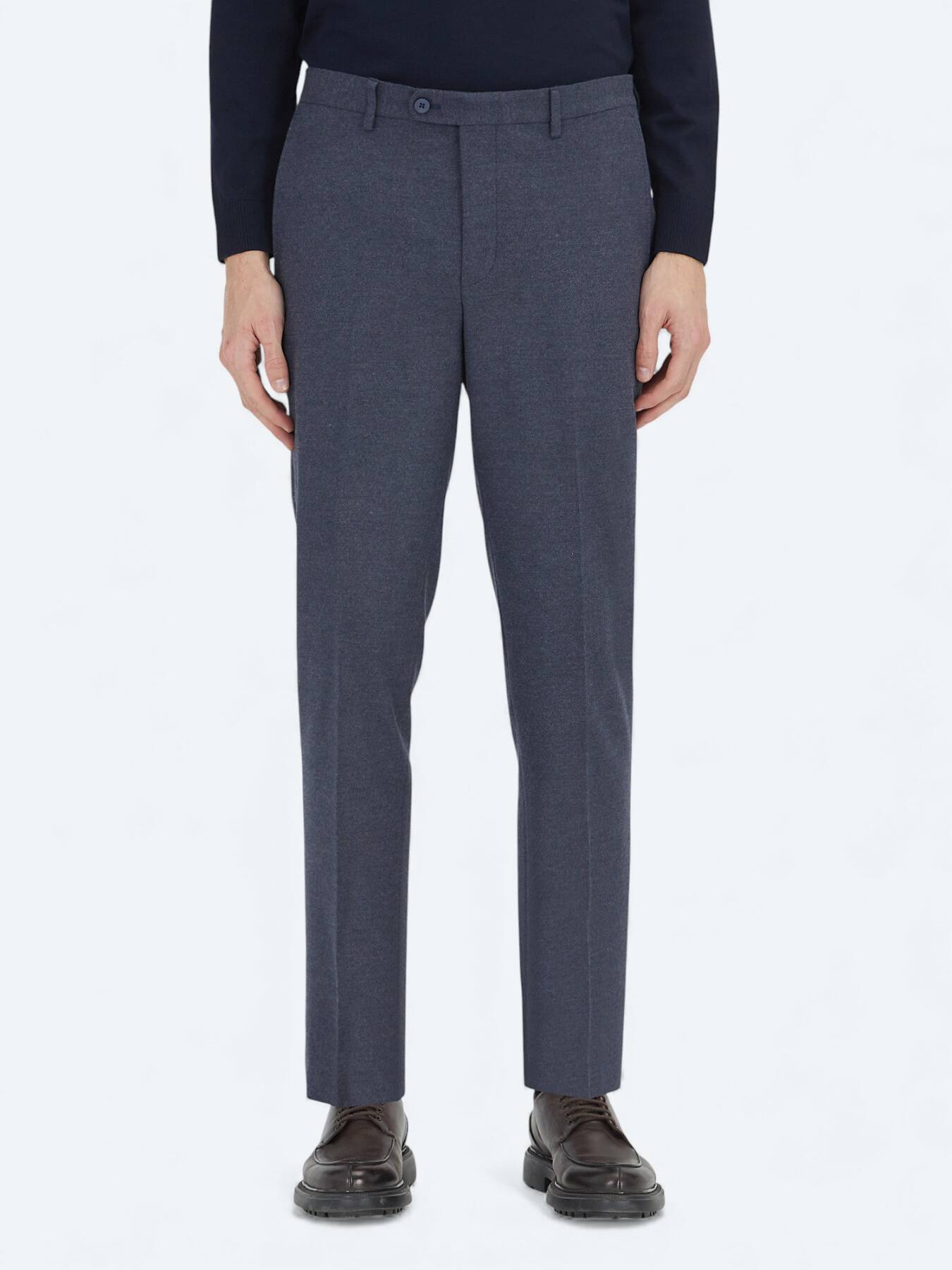 %2 elastan ise pantolona esneklik ekleyerek gün boyu hareket özgürlüğü sağlar.Lacivert rengi sayesinde hem resmi hem de smart-casual kombinlerde rahatlıkla tercih edilebilir.