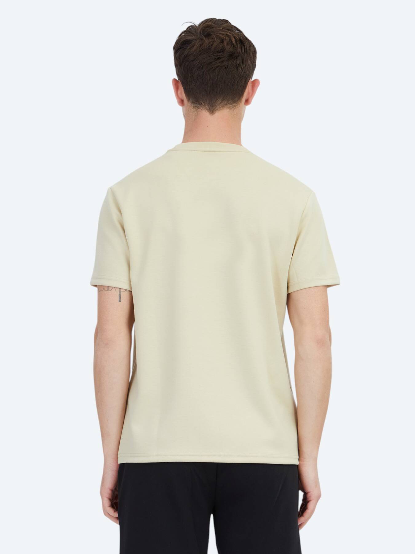 Açık Sarı Düz Bisiklet Yaka T-Shirt