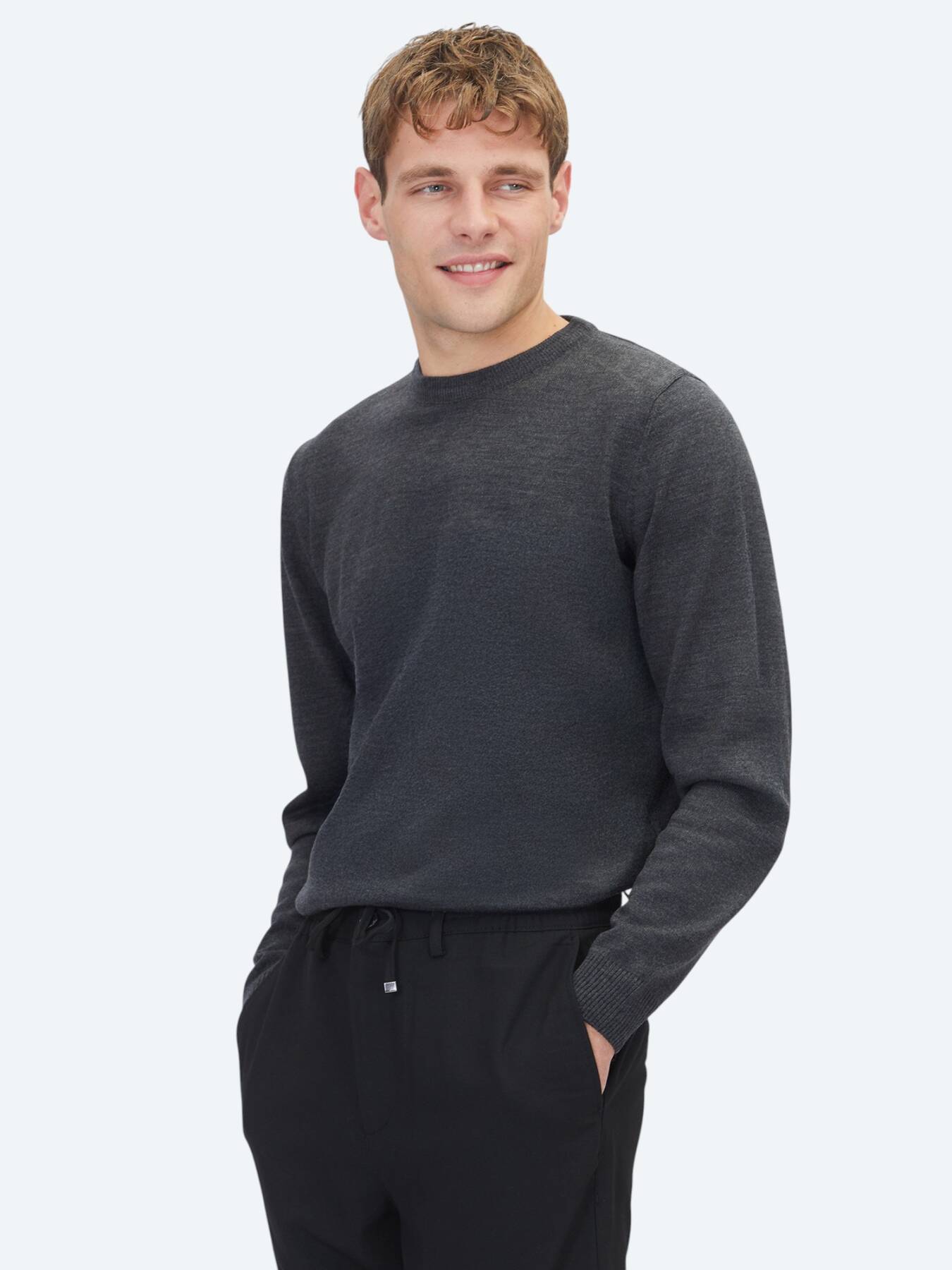 Gelince Haber VerDüz örgü dokusuyla sade bir şıklık sunan bu antrasit kazak, kış günlerinde konforlu bir görünüm sağlar.