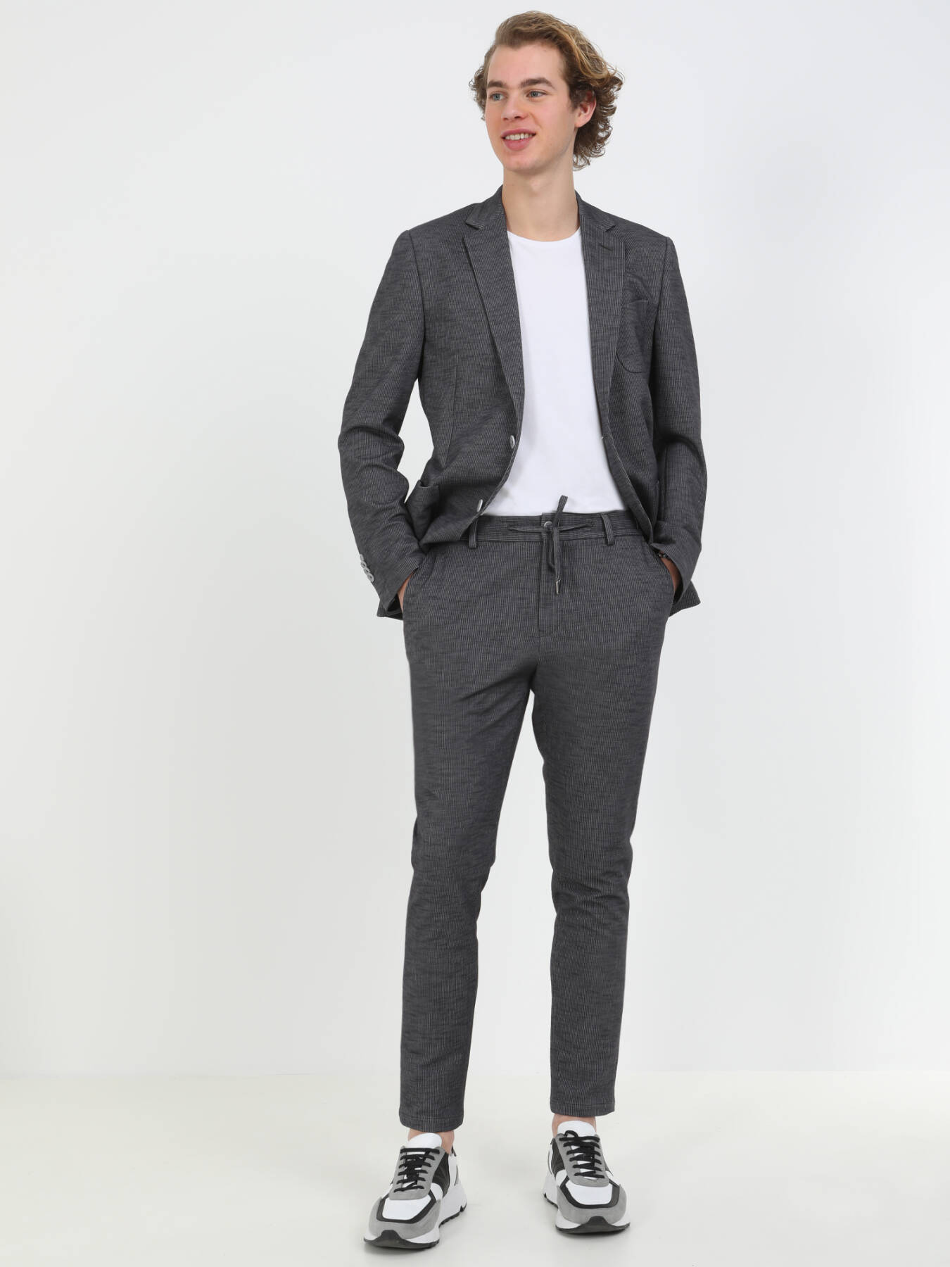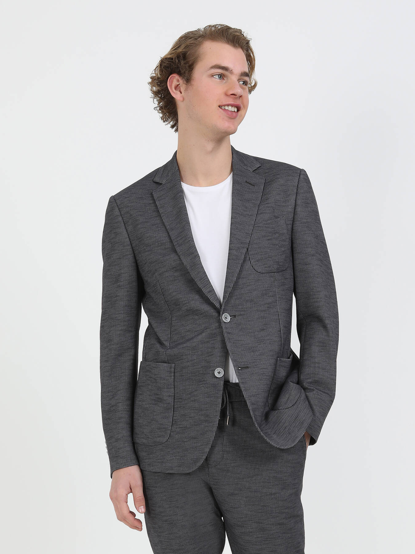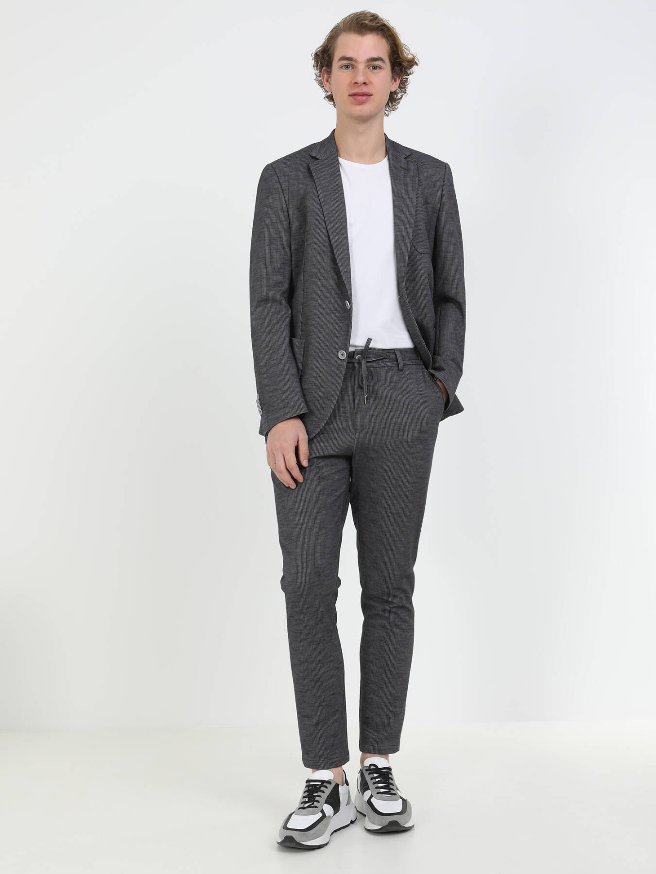 Antrasit Çizgili Modern Fit Pamuk Karışımlı Örme Takım Elbise