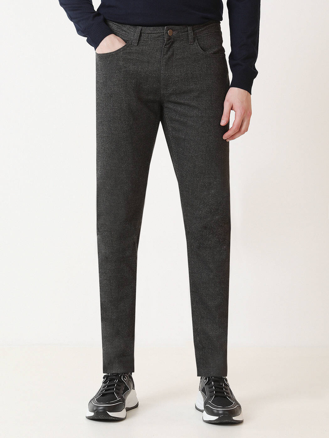 Antrasit Dokuma Slim Fit Casual Pamuk Karışımlı Pantolon