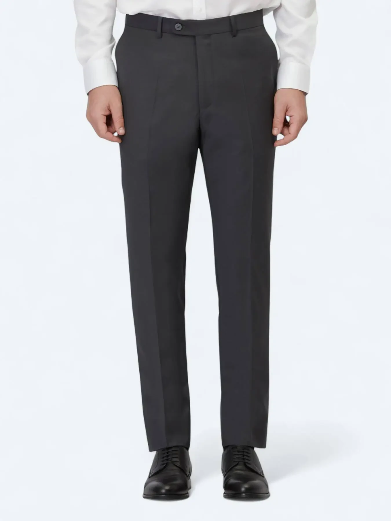 Antrasit Düz Dokuma Fitted Fit Klasik Yün Karışımlı Pantolon