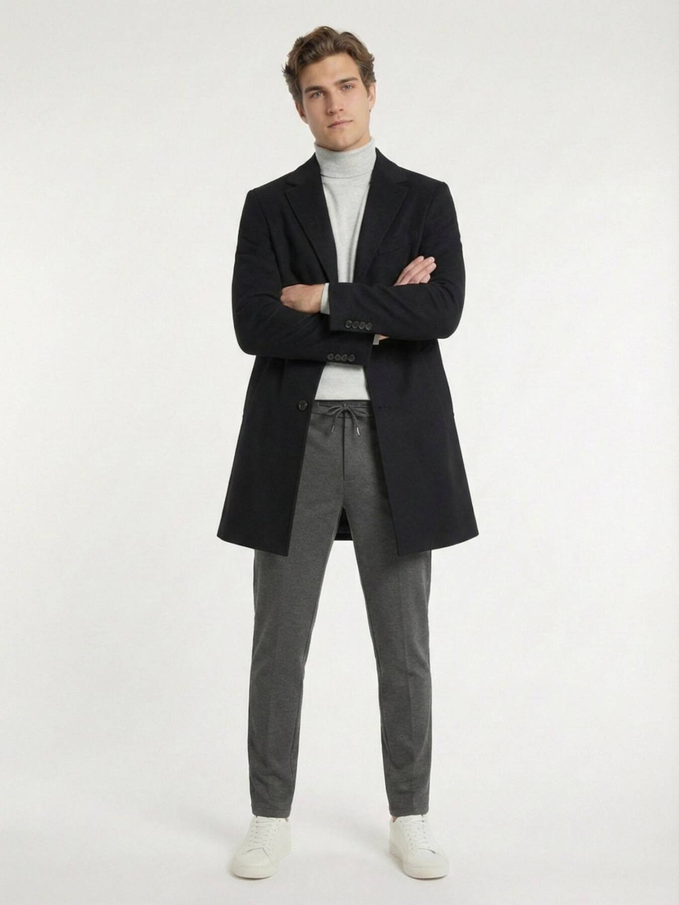 Model: Height: 187 cm, Chest: 98 cm, Waist: 78 cm, Hips: 96 cm, Size: 32