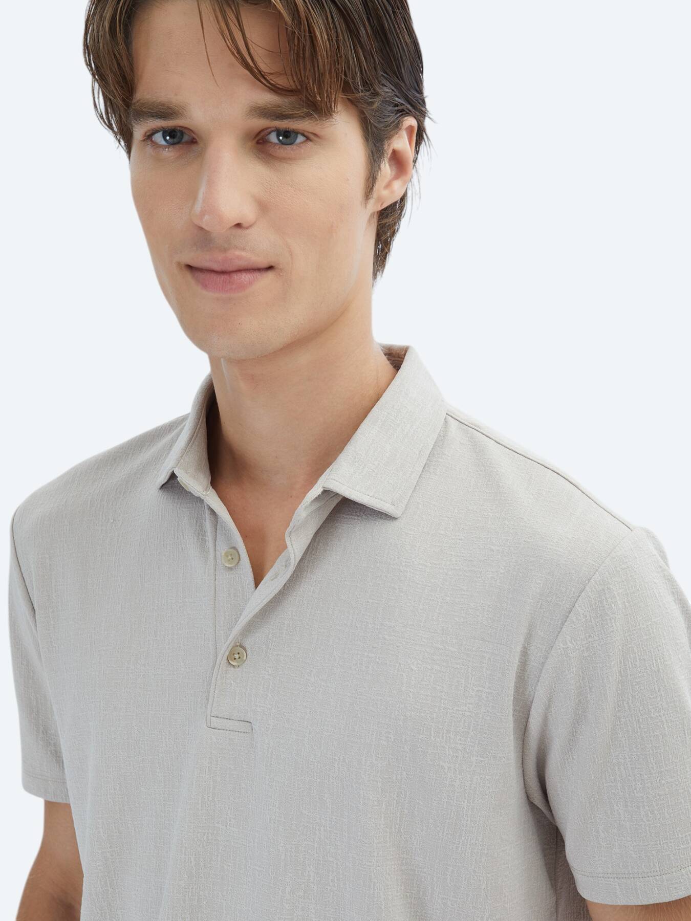 Beige Jacquard Polo Neck T-Shirt