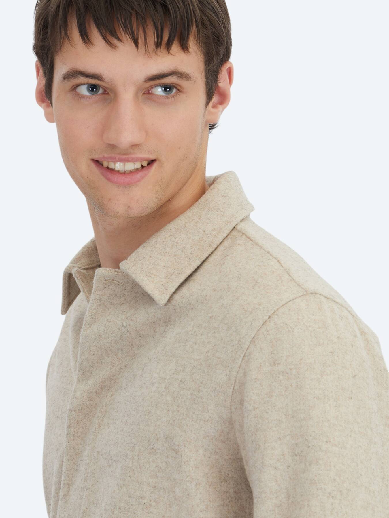 Thanks to the fluidity of 45% viscose fabric, the warmth of 30% wool and the durability of 25% polyester, the overshirt becomes an ideal outer layer for both seasonal transitions and layered clothing. While the beige color easily adapts to any color with its naturalness and neutrality, it is a candidate to be the star of light-toned combinations.