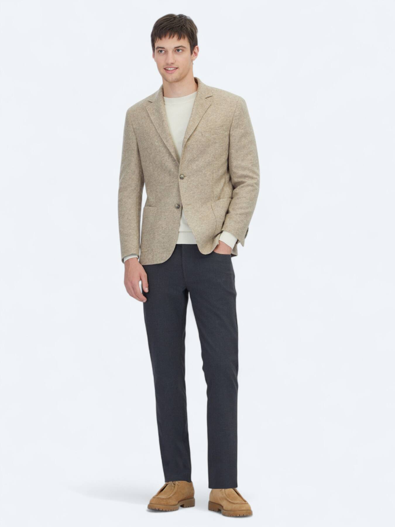 Model: Height: 187 cm, Chest: 98 cm, Waist: 78 cm, Hips: 96 cm, Size: 48
