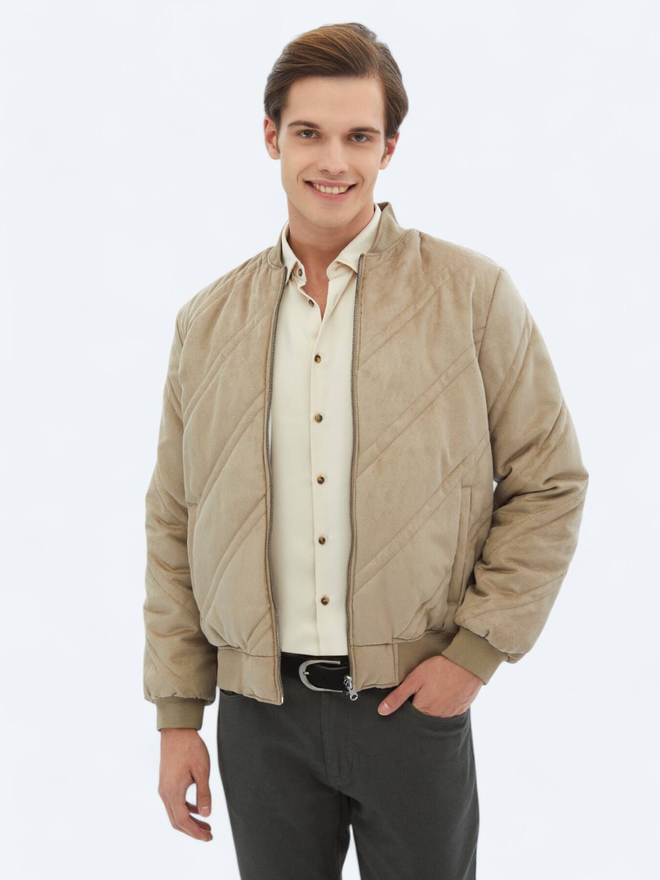 Beige Regular Fit Turtleneck Casual Weaving Coat