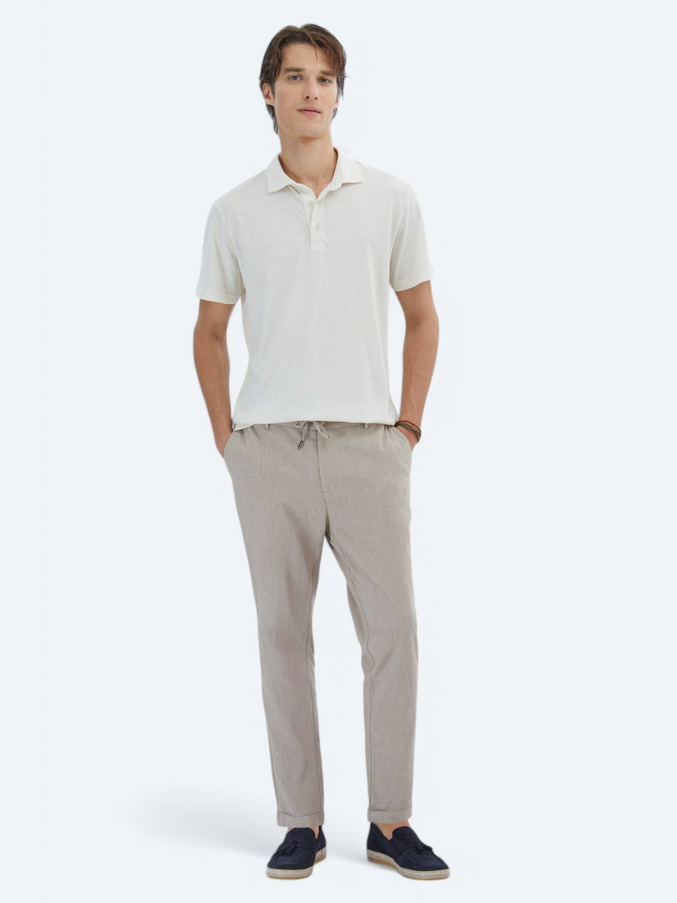 Regular fit kesimi, rahat bir oturuş sağlarken bej rengi ve desen detayı casual stilinize stil sahibi bir dokunuş katar.