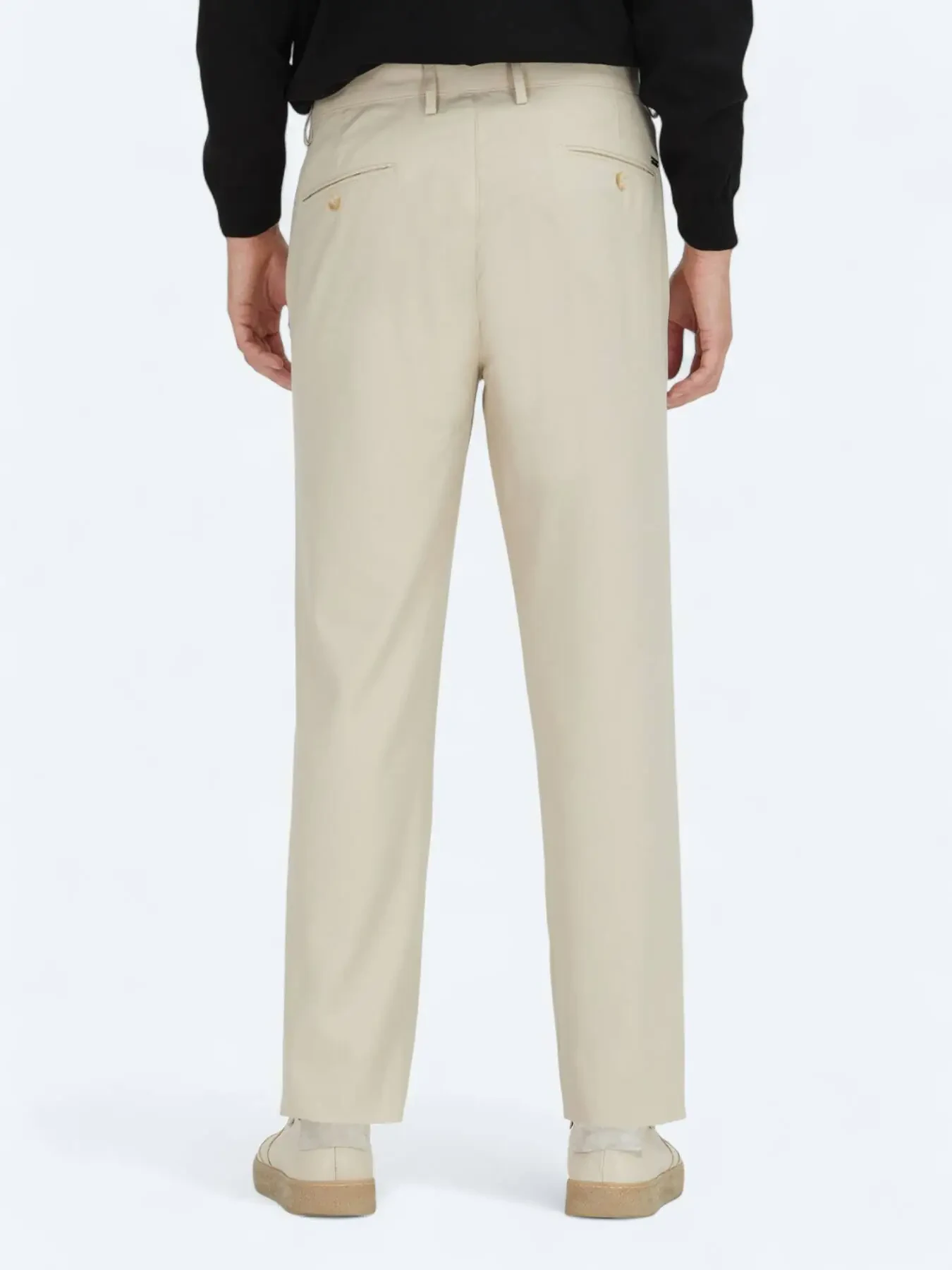 Bej Düz Dokuma Regular Fit Casual Pantolon - 1