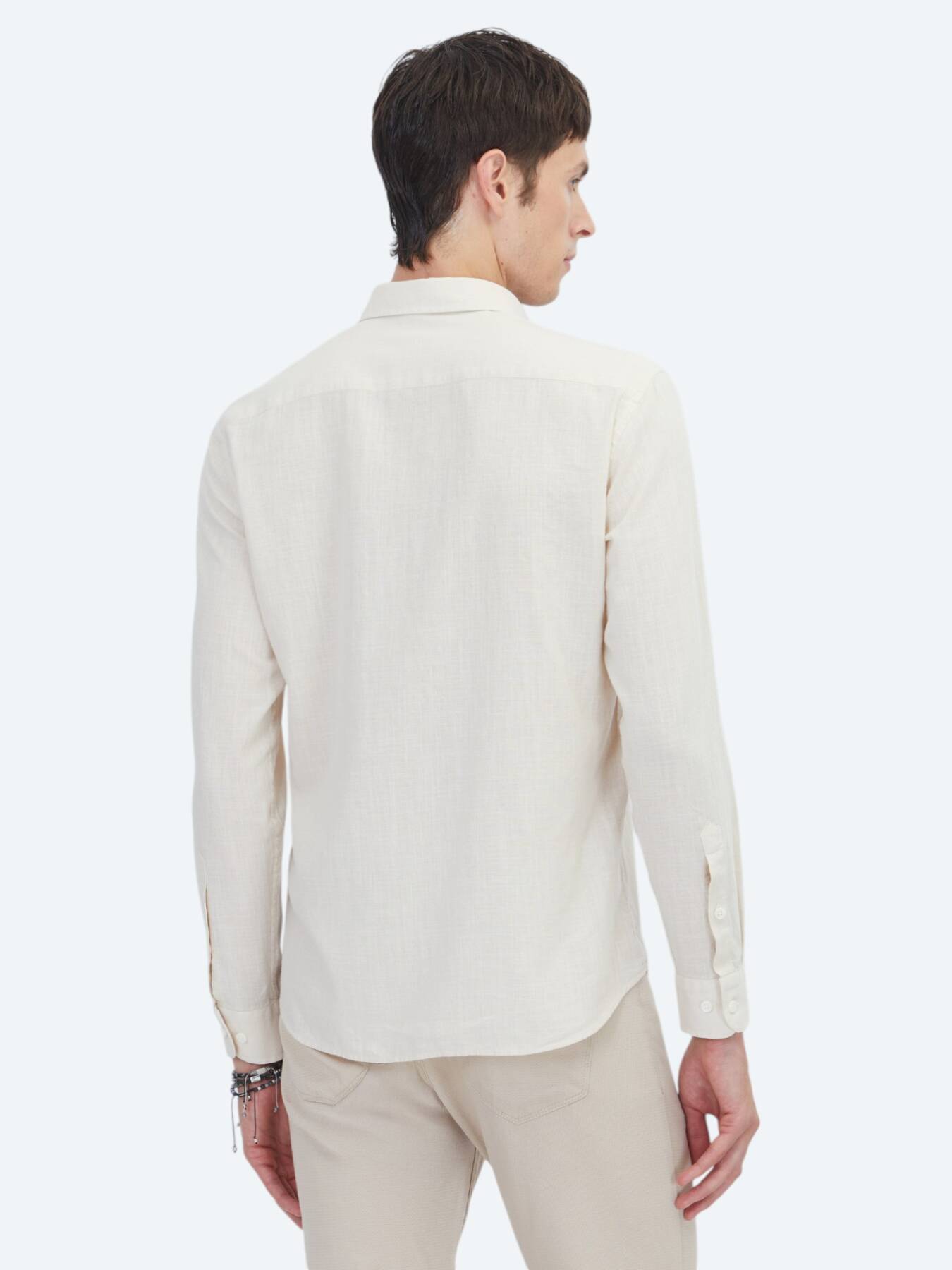 Bej Düz Regular Fit Dokuma Casual %100 Pamuk Gömlek