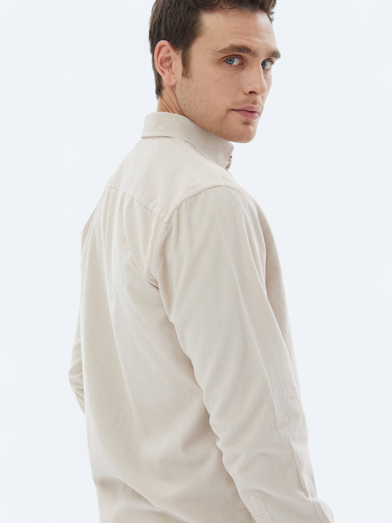 Bej Fitilli Regular Fit Uzun Dokuma Kadife Casual %100 Pamuk Gömlek