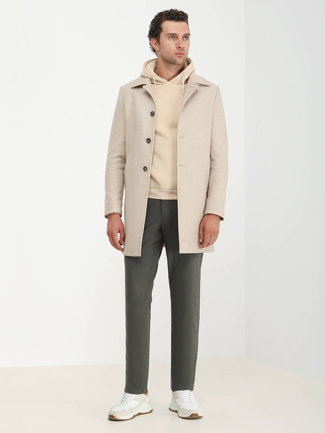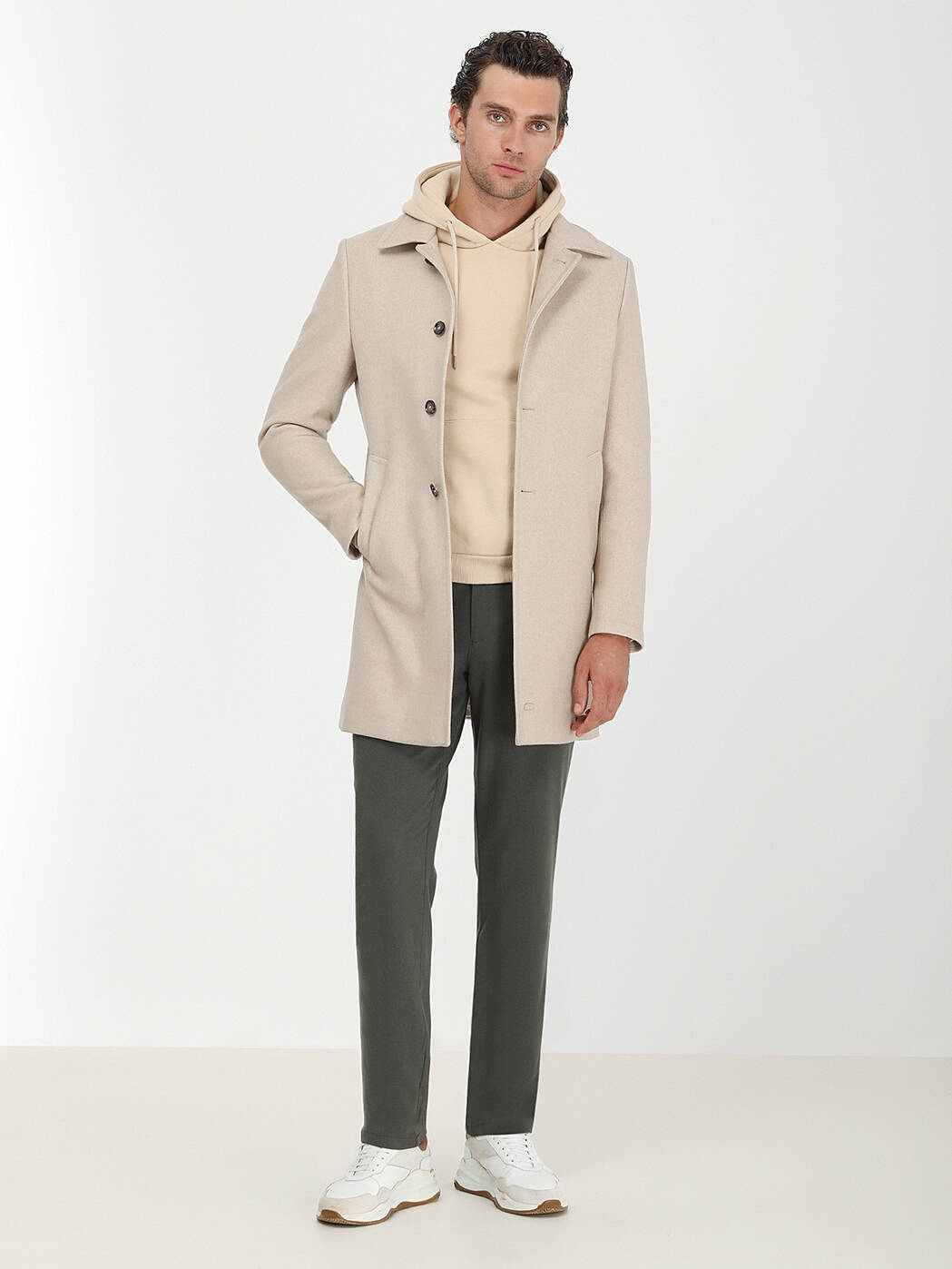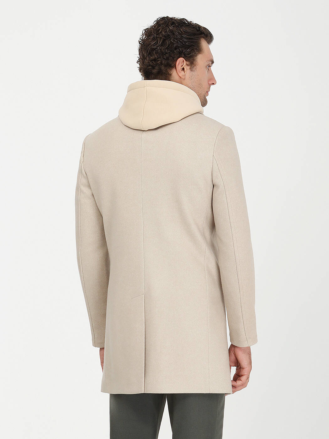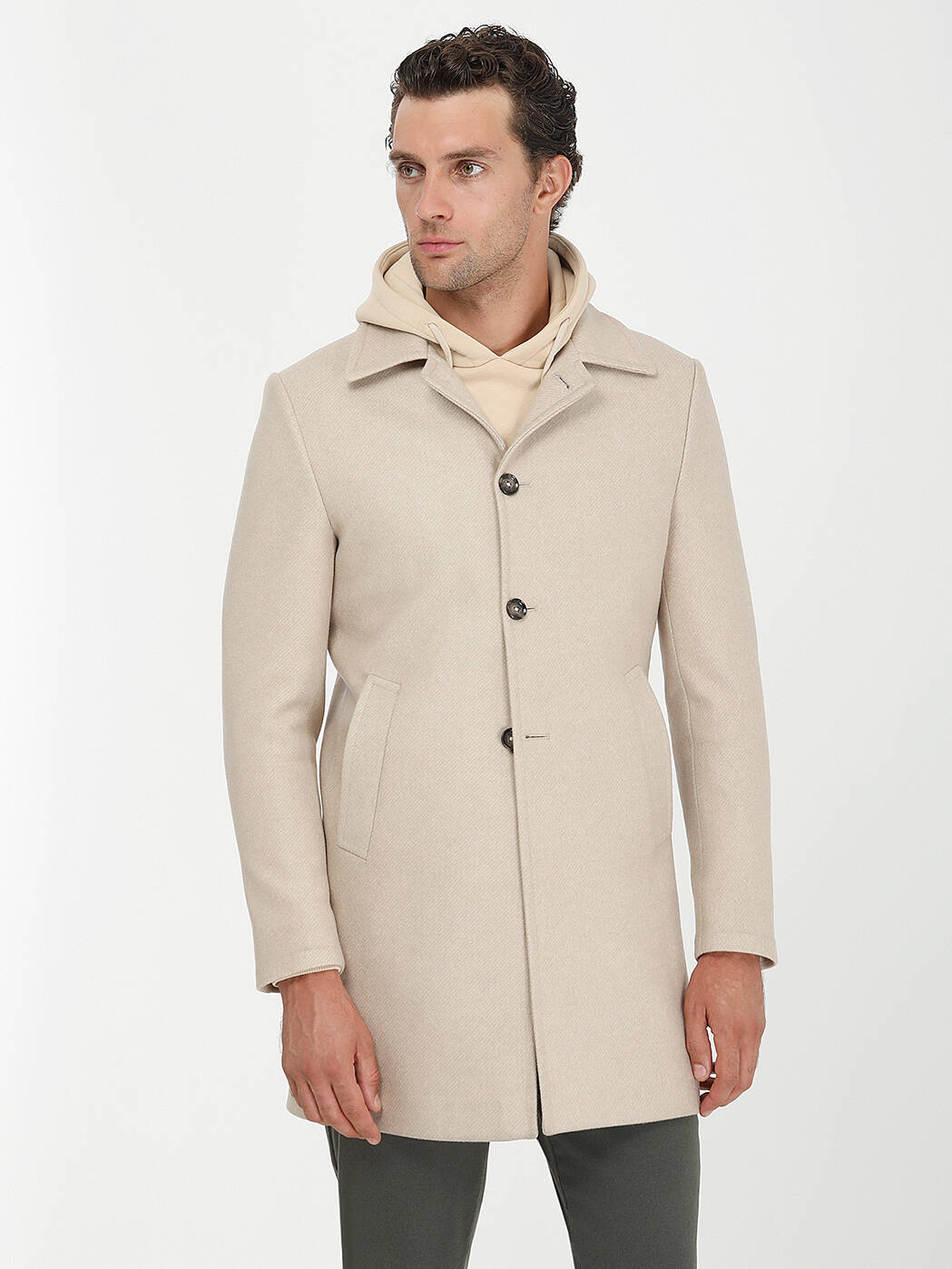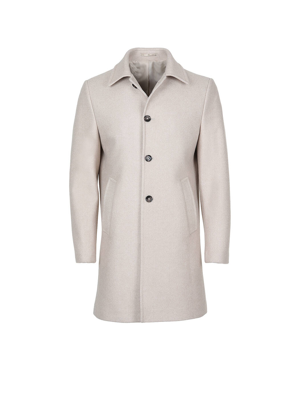 Bej Regular Fit Kelebek Yaka Klasik Dokuma Palto