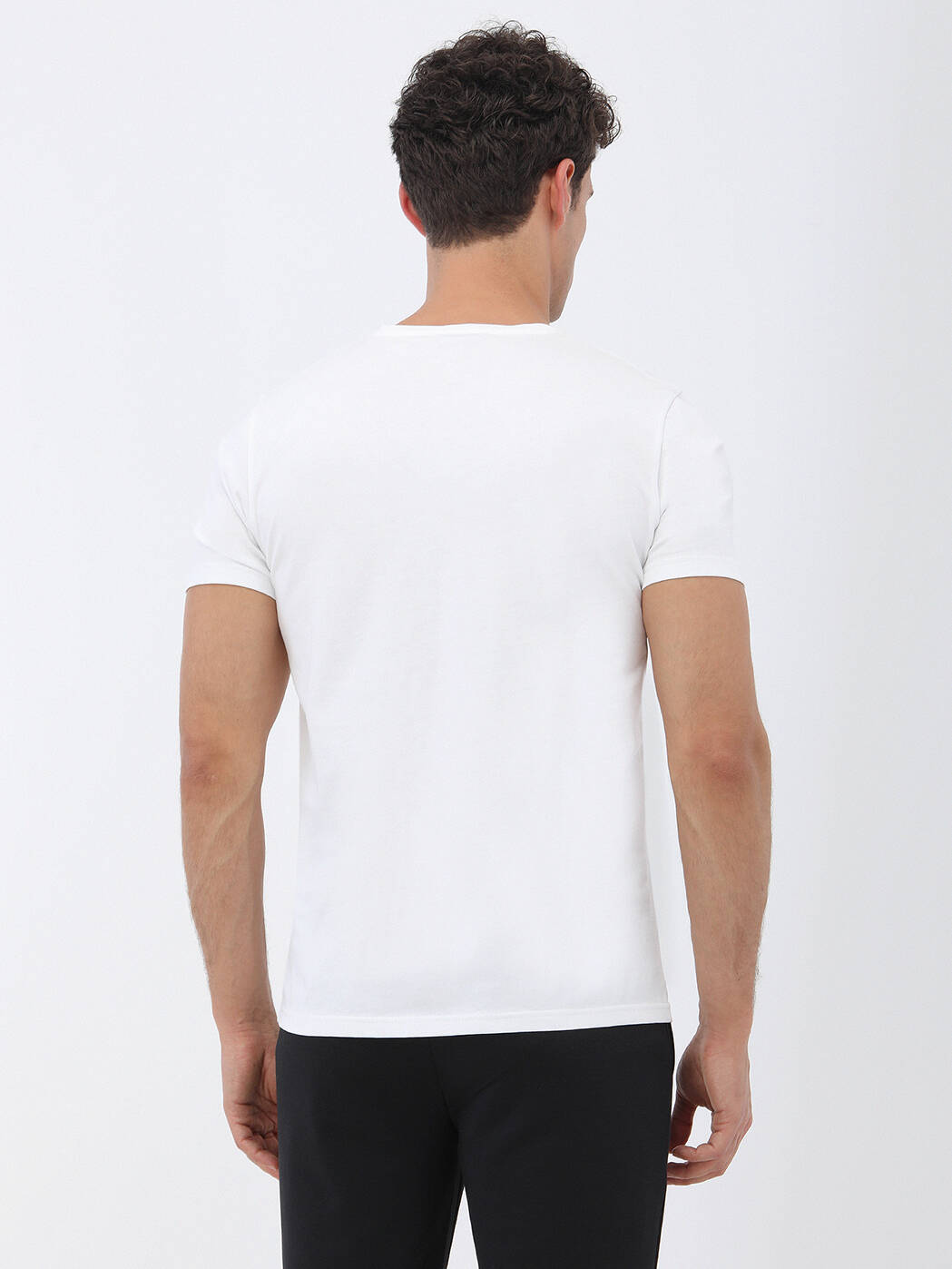 Beyaz Baskılı Bisiklet Yaka %100 Pamuk T-Shirt