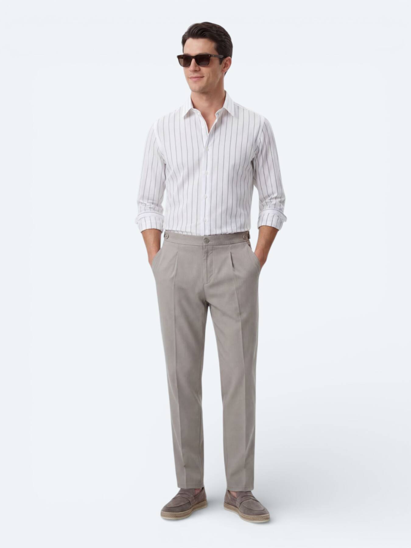 Gelince Haber VerMinimalist çizgilerle zarafeti bir araya getiren bu beyaz çizgili casual gömlek, yaz gardırobunuzun en çok tercih edilen parçalarından biri olmaya aday. Regular fit kesimiyle dengeli bir siluet sunarken, alttan düğmeli yaka tasarımı gömleğe modern bir hava katar. Poplin dokusu, nefes alabilir ve hafif yapısıyla sıcak günlerde konfor sağlar.