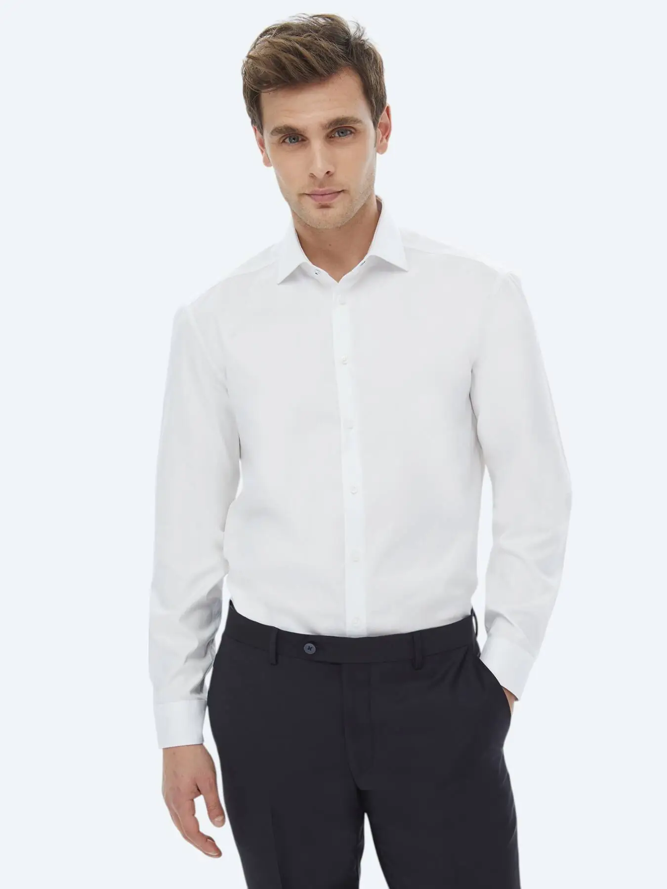 White Plain Regular Fit Weaving Classical 100% Cotton Shirt