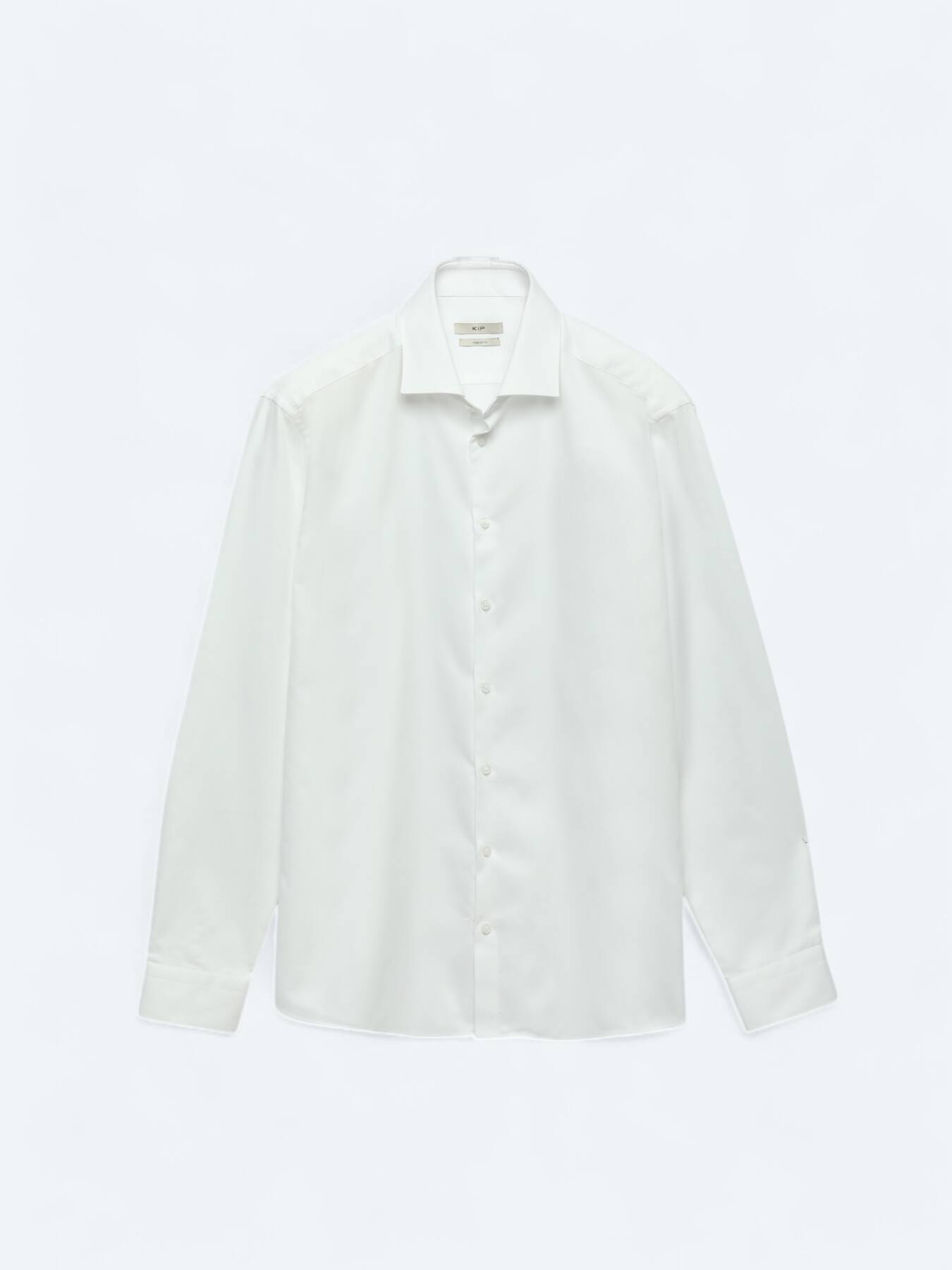 Beyaz Düz Regular Fit Uzun Dokuma Klasik %100 Pamuk Gömlek