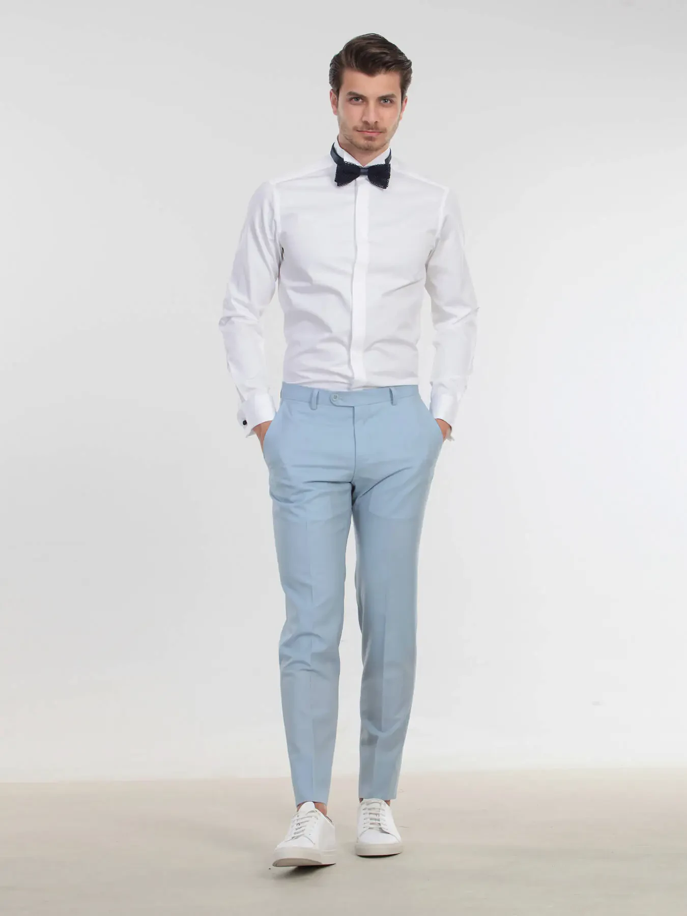 Beyaz Düz Slim Fit Duble Manşet Ata Yaka Smokin Gömlek