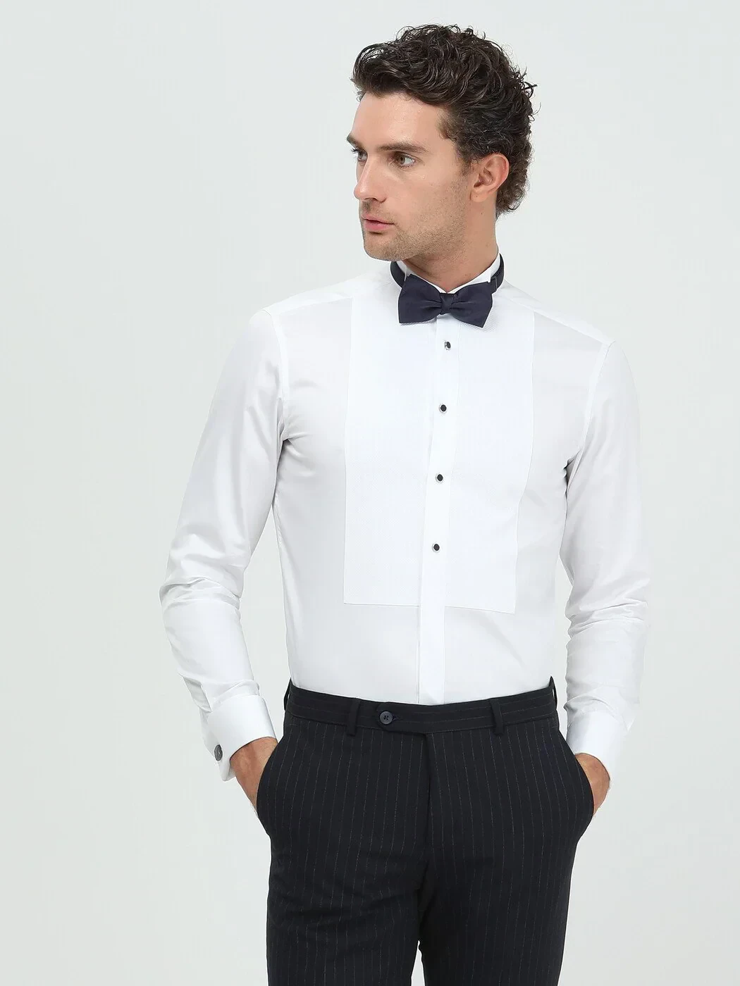 Beyaz Düz Slim Fit Duble Manşet Ata Yaka Smokin Gömlek