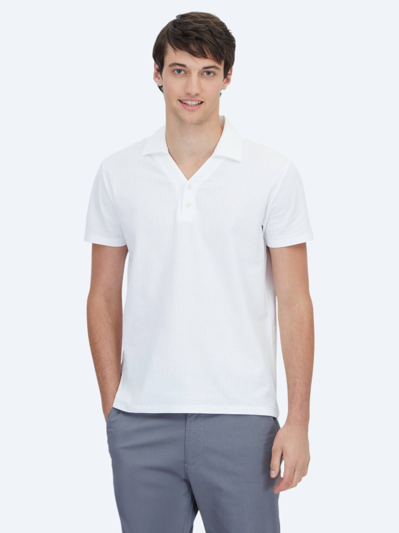 Doğal dokusuyla dikkat çeken bu beyaz tişört, ister jean ister dokuma pantolonlarla kolayca eşleşebilir.