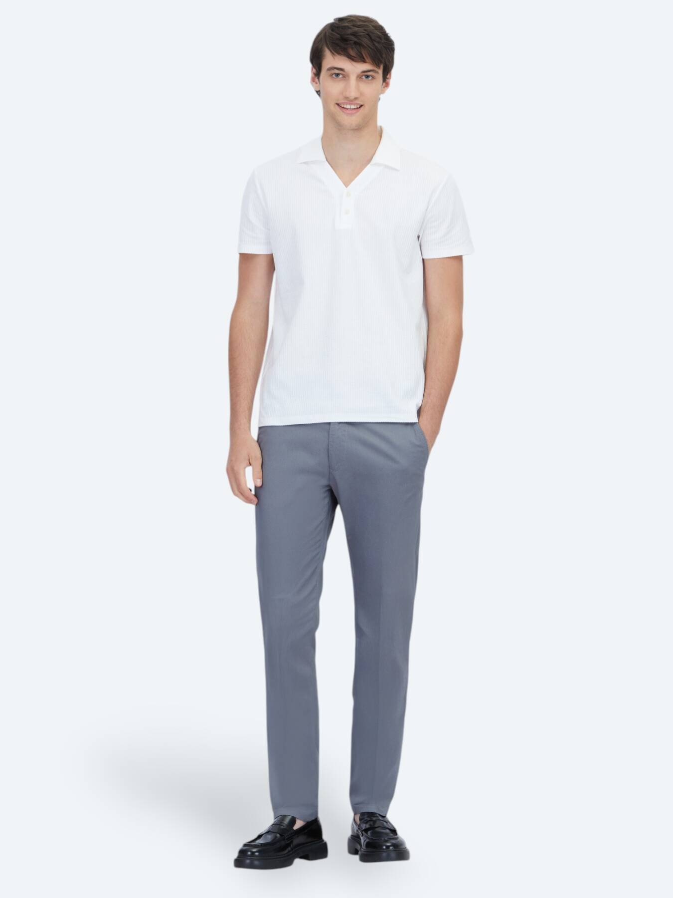 %100 pamuklu yapısıyla gardıropların temel taşlarından biridir.