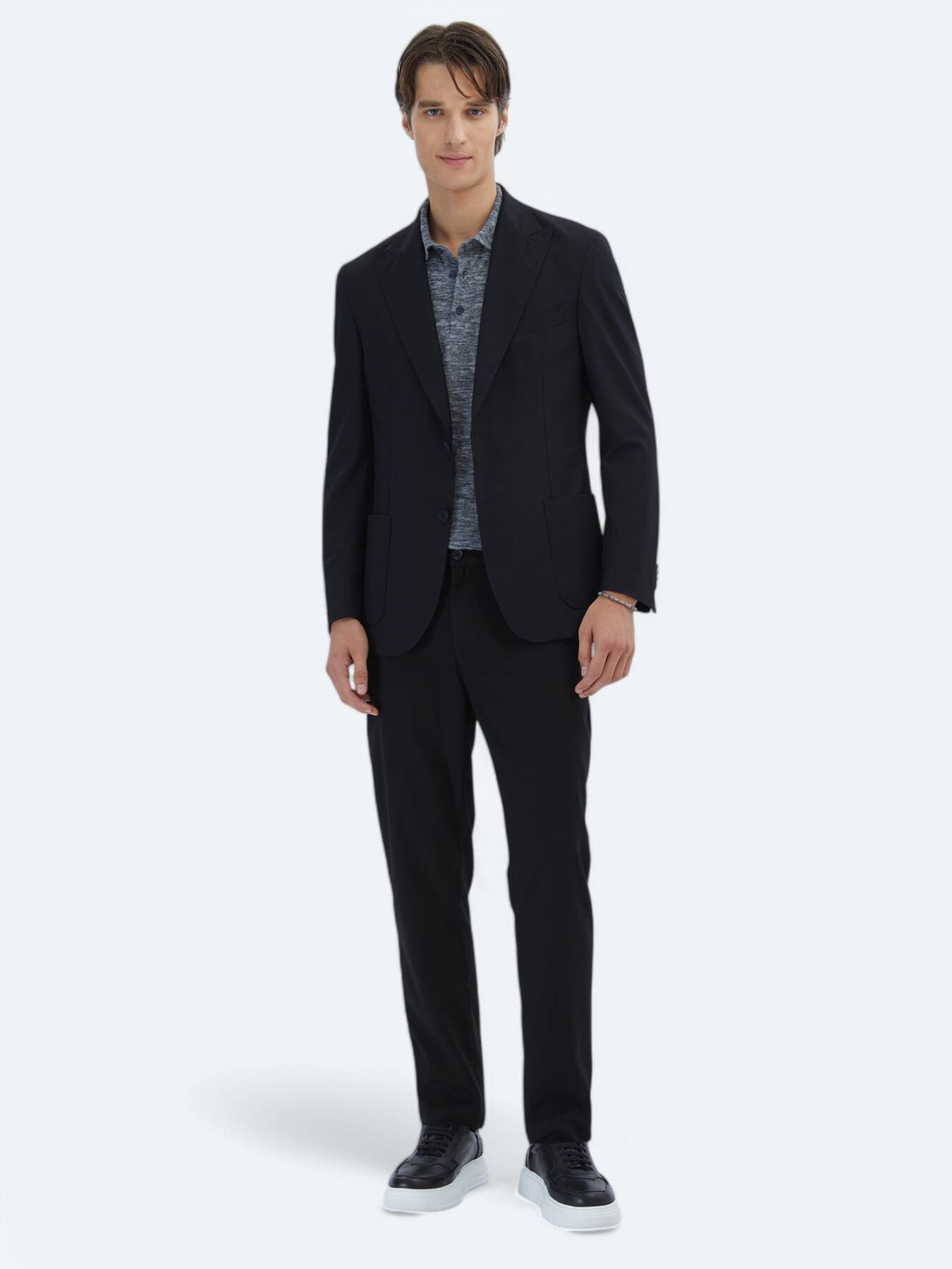 The modern fit fit offers a more defined and contemporary silhouette to the body, while the double-slit back design enhances freedom of movement. Its half-lined inner structure and soft working type give the jacket a light and natural wearing feeling, providing comfort all day long.