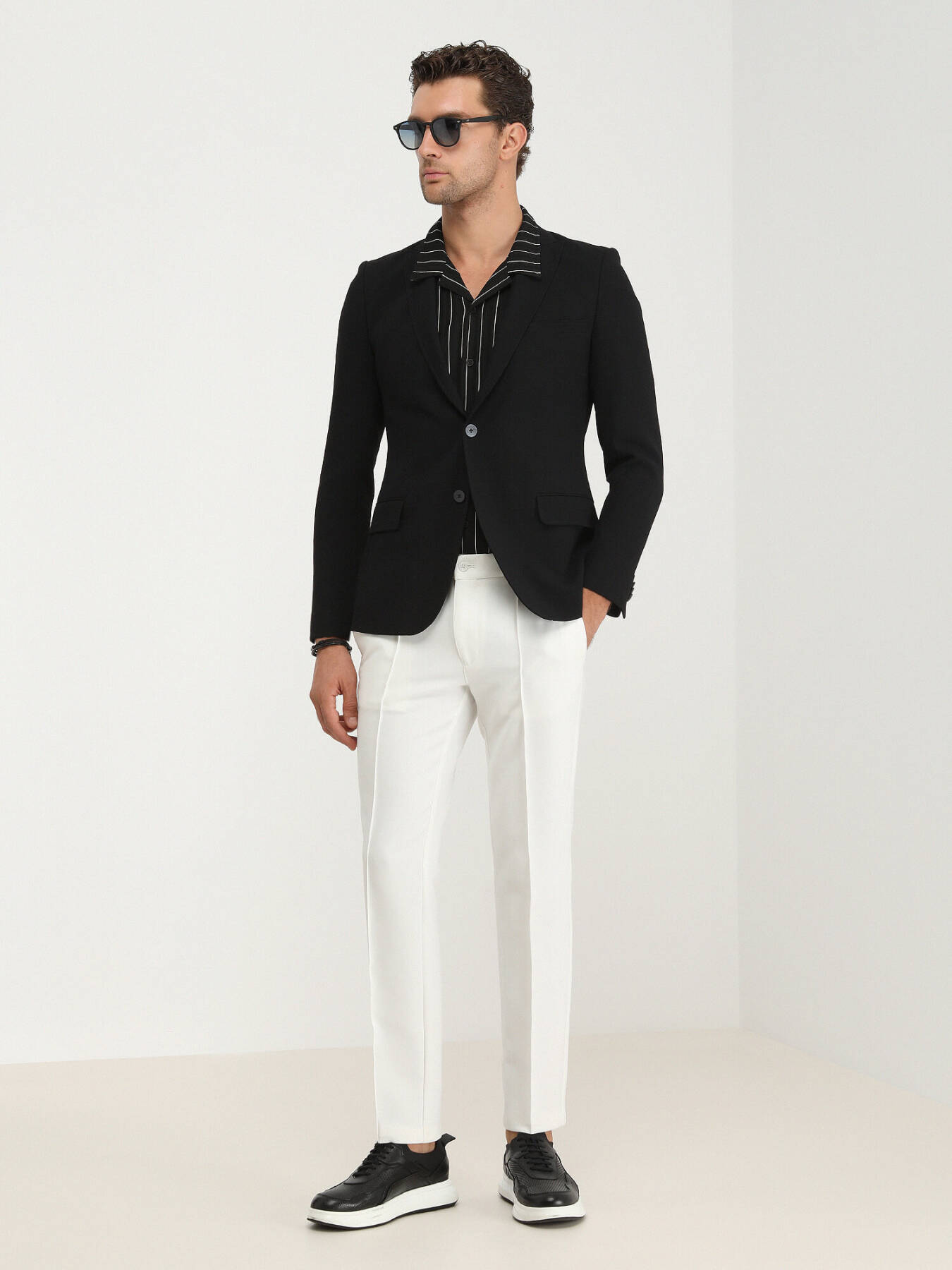 Model: Height: 189 cm, Chest: 99 cm, Waist: 82 cm, Hips: 94 cm, Size: 48