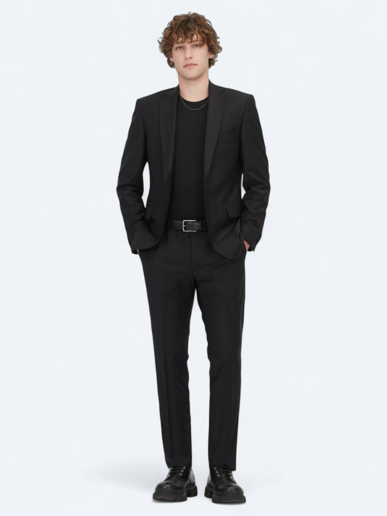 Black Plain Slim Fit Wool Blended Suit