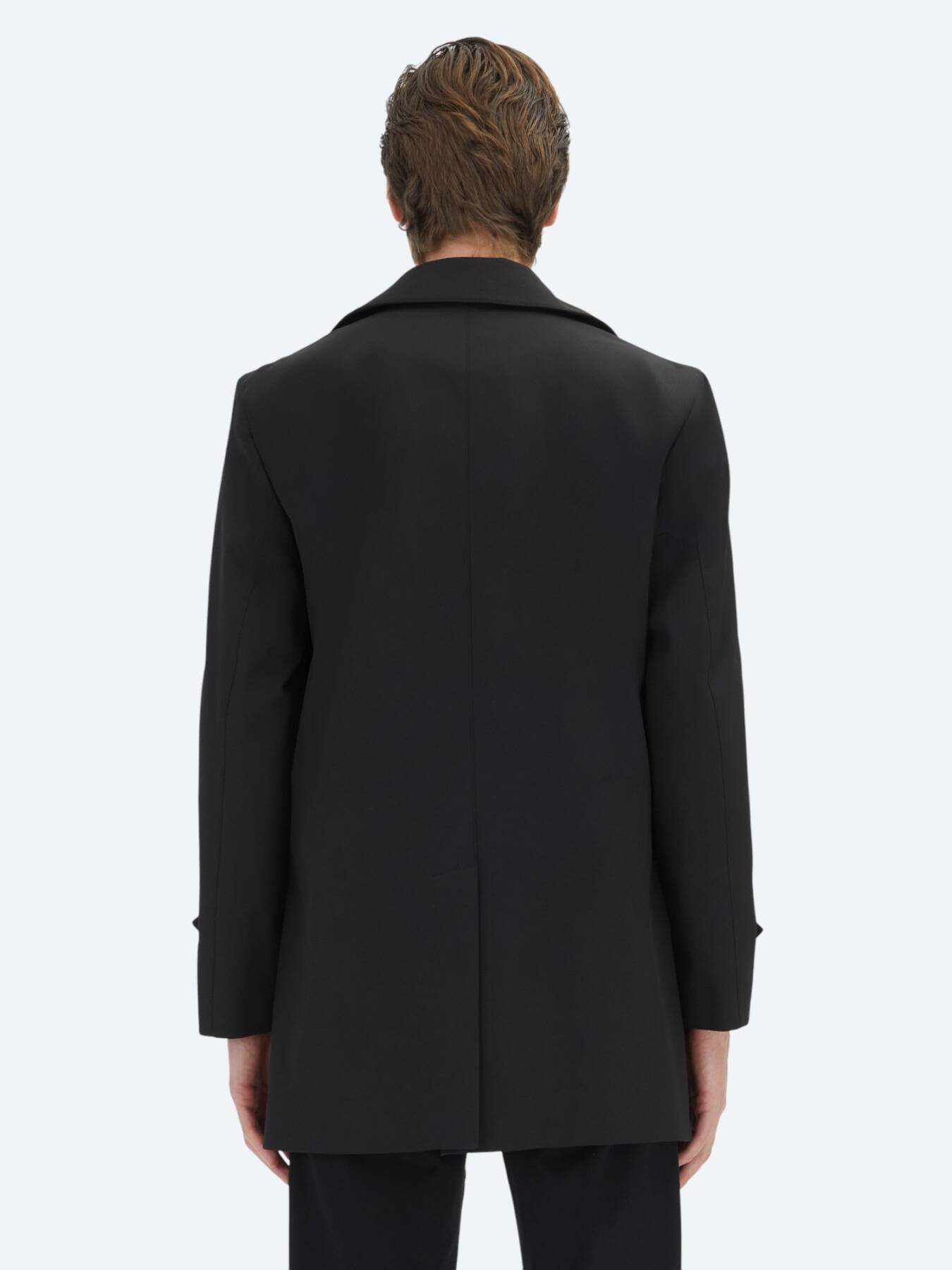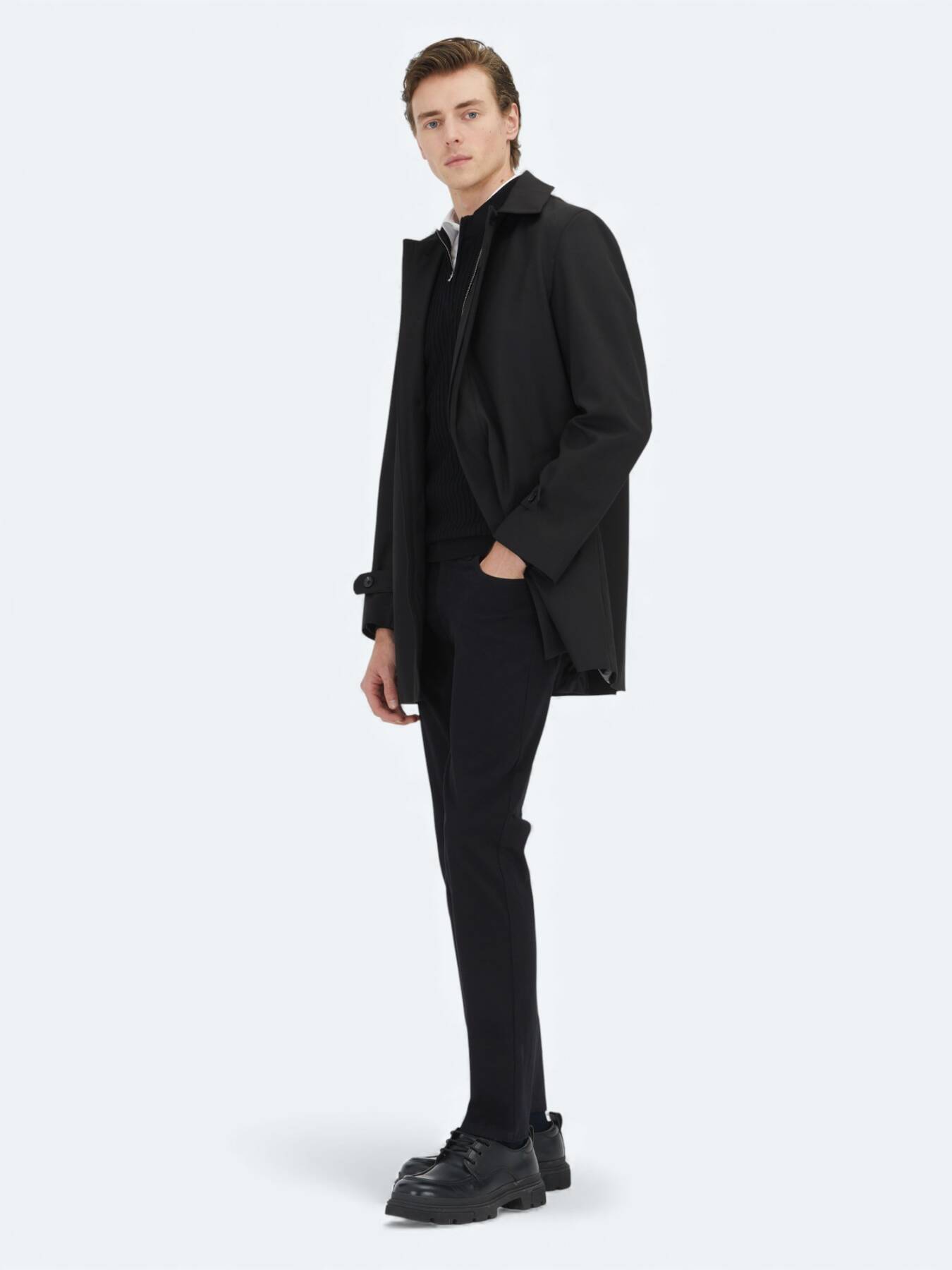 Black Regular Fit Round Collar Casual Weaving Rain Coat