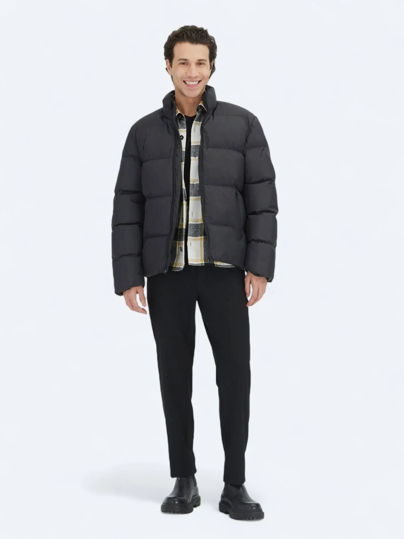 Black Regular Fit Turtleneck Casual Weaving Coat - 1