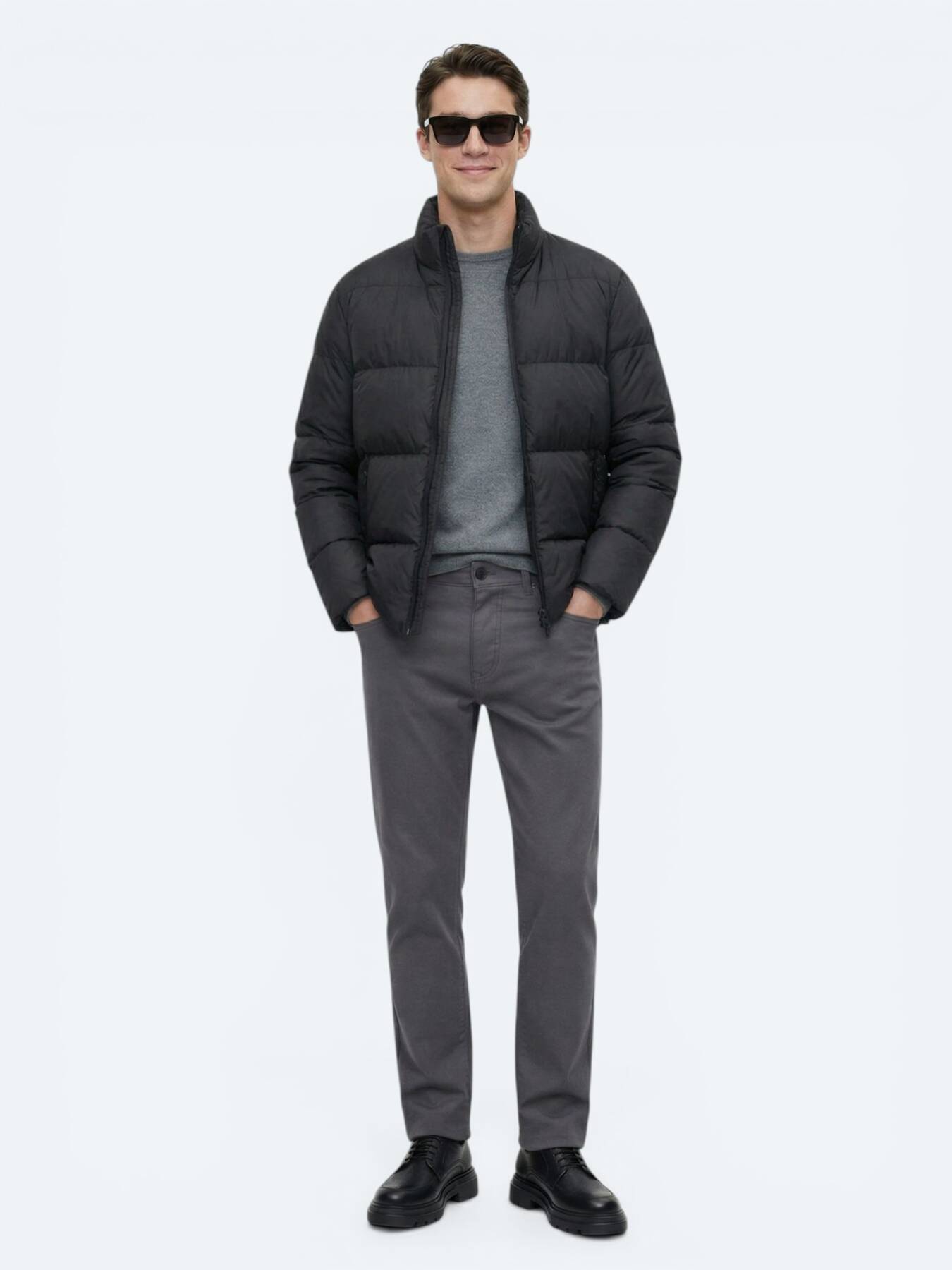 Notify me when its in stockThe black regular fit stand-up collar casual woven coat, which provides protection against variable weather conditions in city life, is one of the indispensable pieces of winter style with its functional features and timeless design. Thanks to its wind-protective woven fabric and stand-up collar design that wraps around the neck, it offers comfort all day long by reducing the entry of cold air.