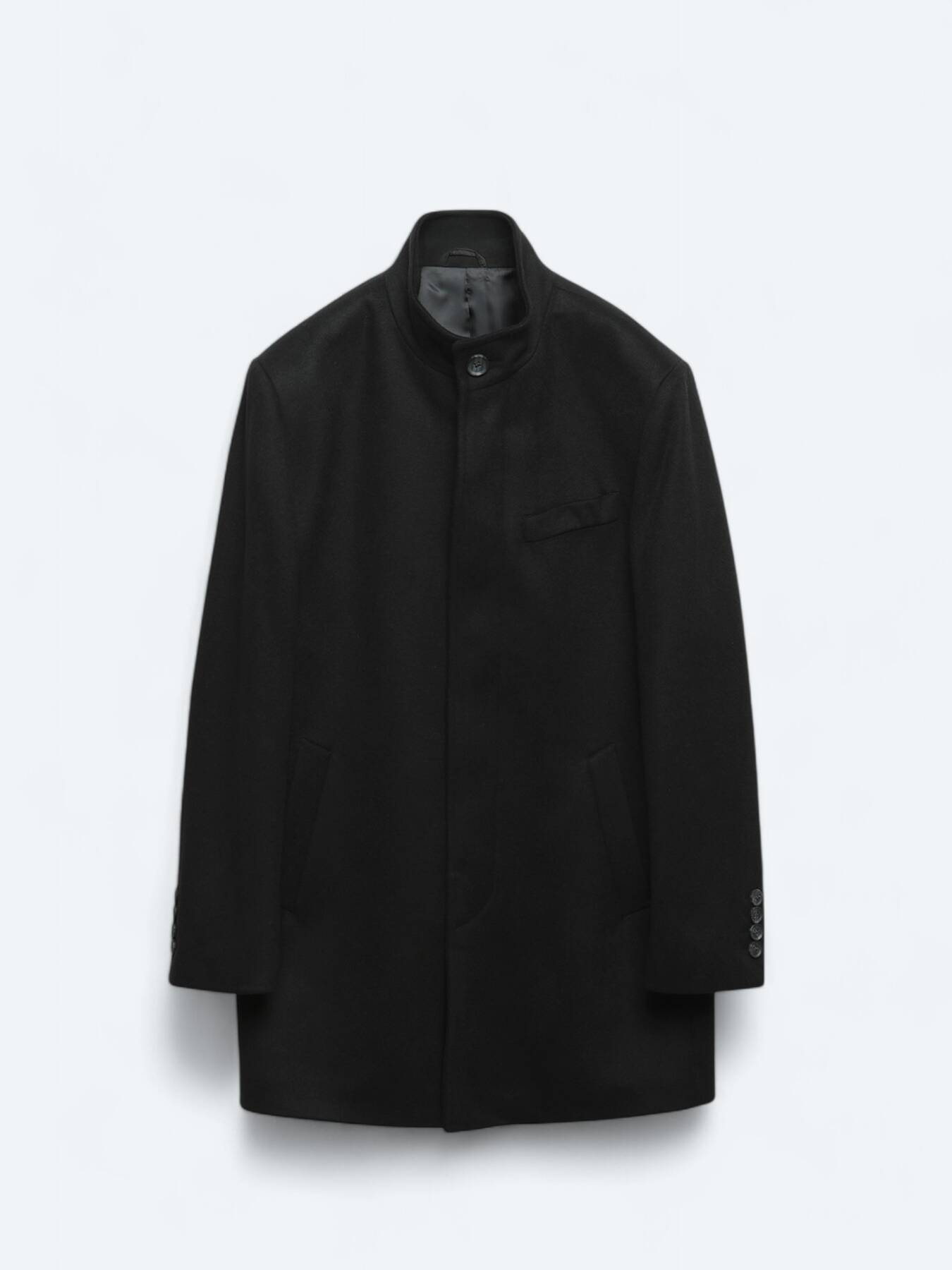 It offers a simple elegance with its stand-up collar detail and regular fit pattern.