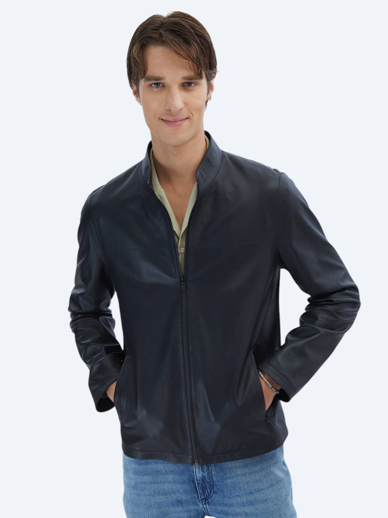 Notify me when its in stockMade of 100% genuine leather with a stand-up collar and regular fit, this coat completes your style on summer evenings with its light and breathable structure. With its timeless design, it is an indispensable piece in both casual and stylish combinations.