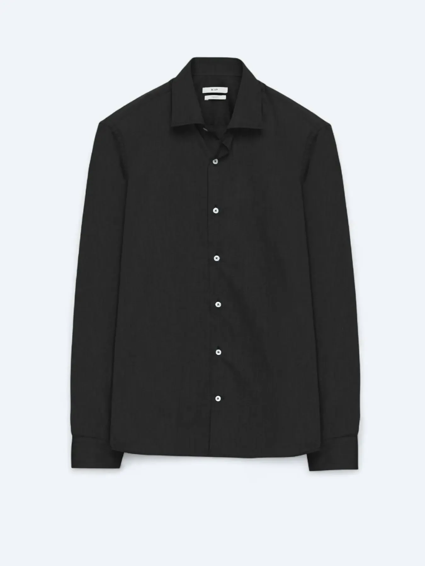Black Regular Fit Weaving Classical Cotton Blended Shirt
