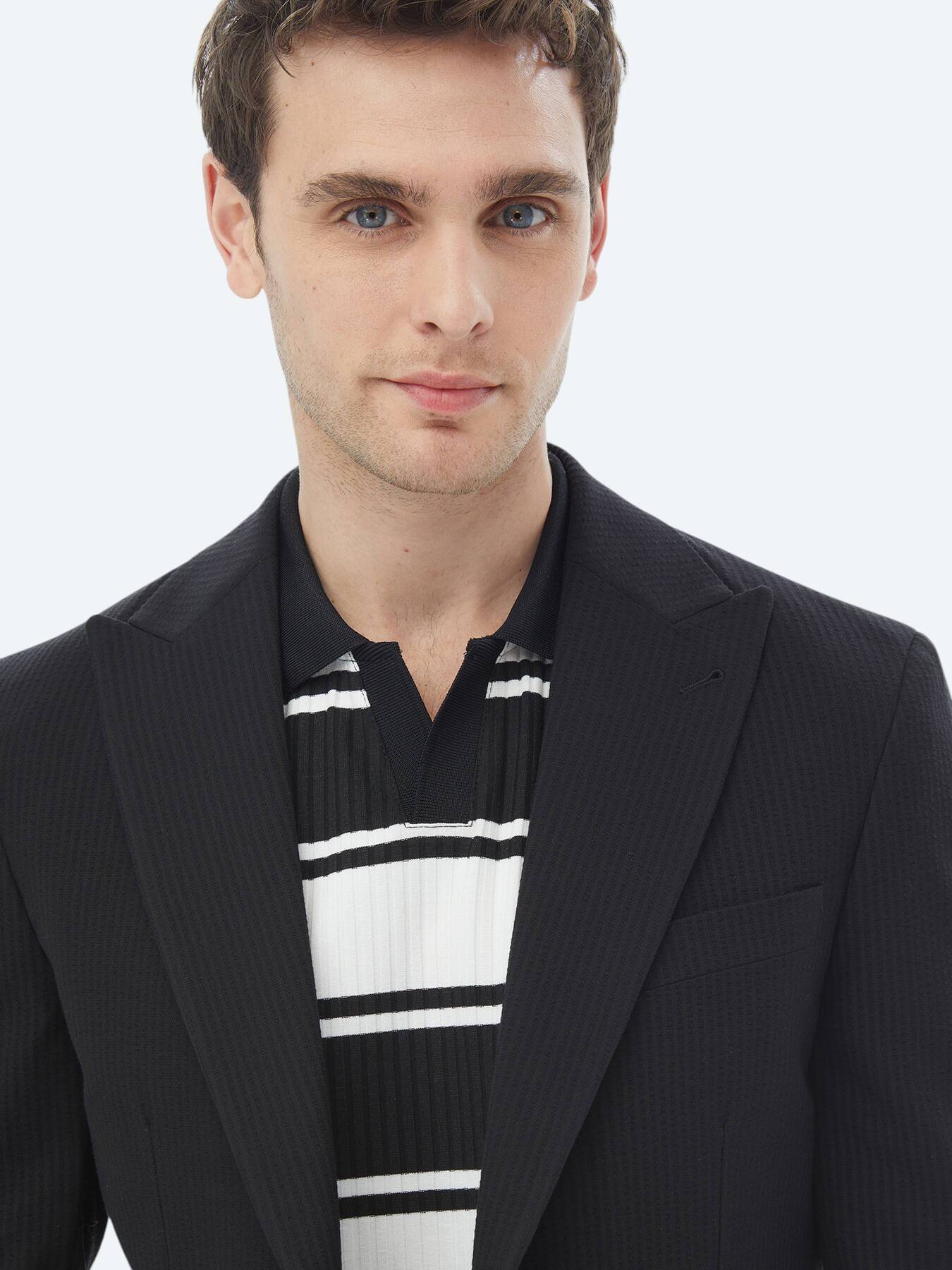 Model: Height: 185 cm, Chest: 98 cm, Waist: 78 cm, Hips: 96 cm, Size: 48