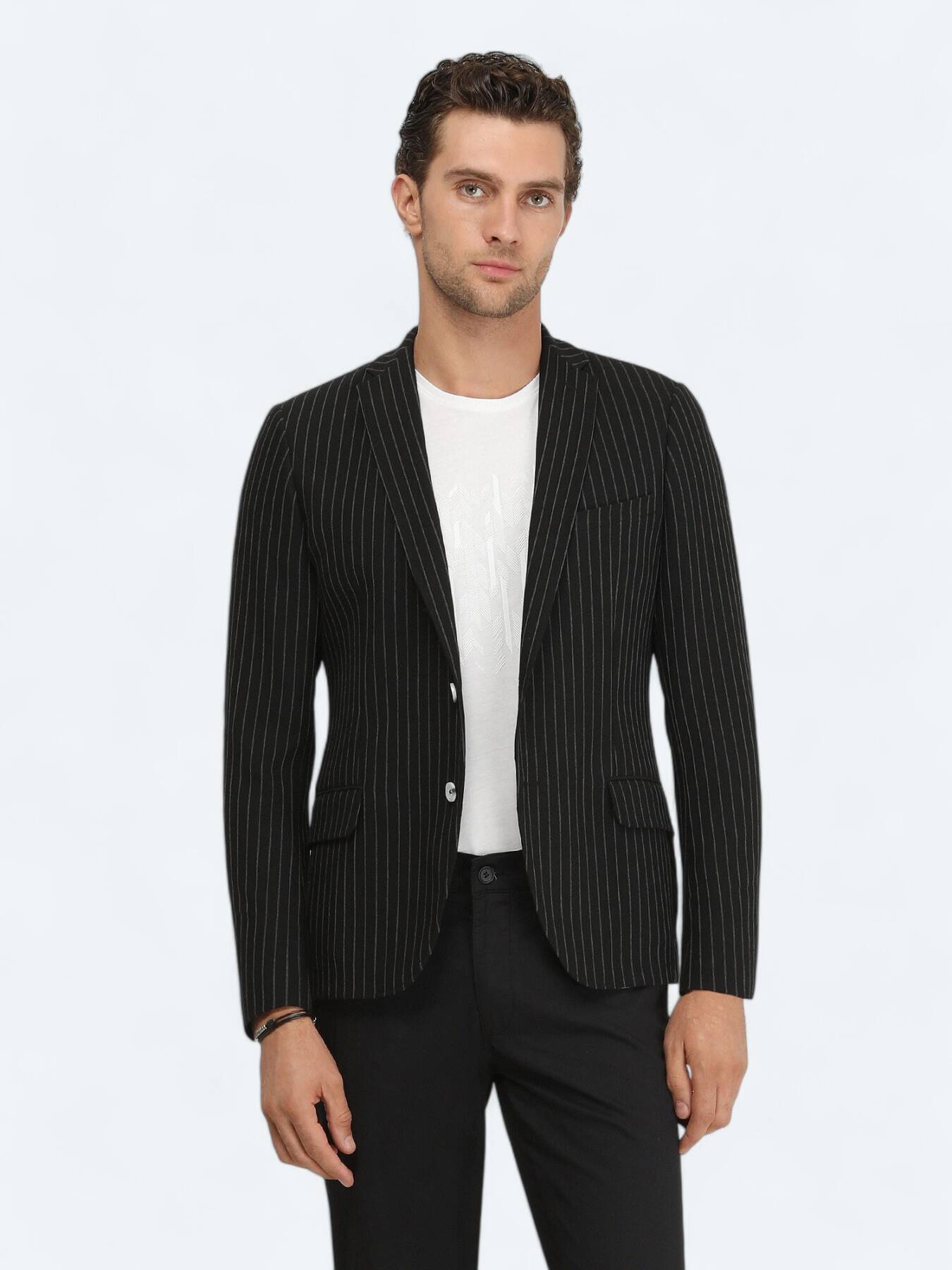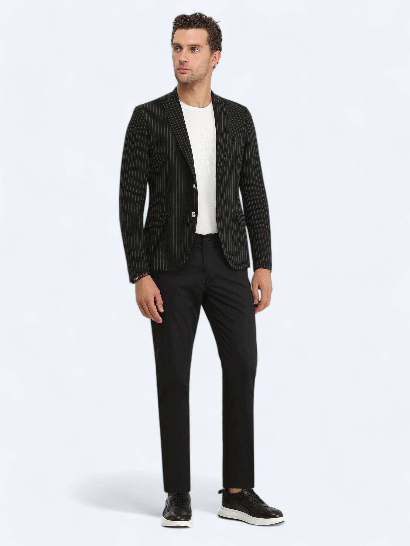 Model: Height: 189 cm, Chest: 99 cm, Waist: 82 cm, Hips: 94 cm, Size: 48