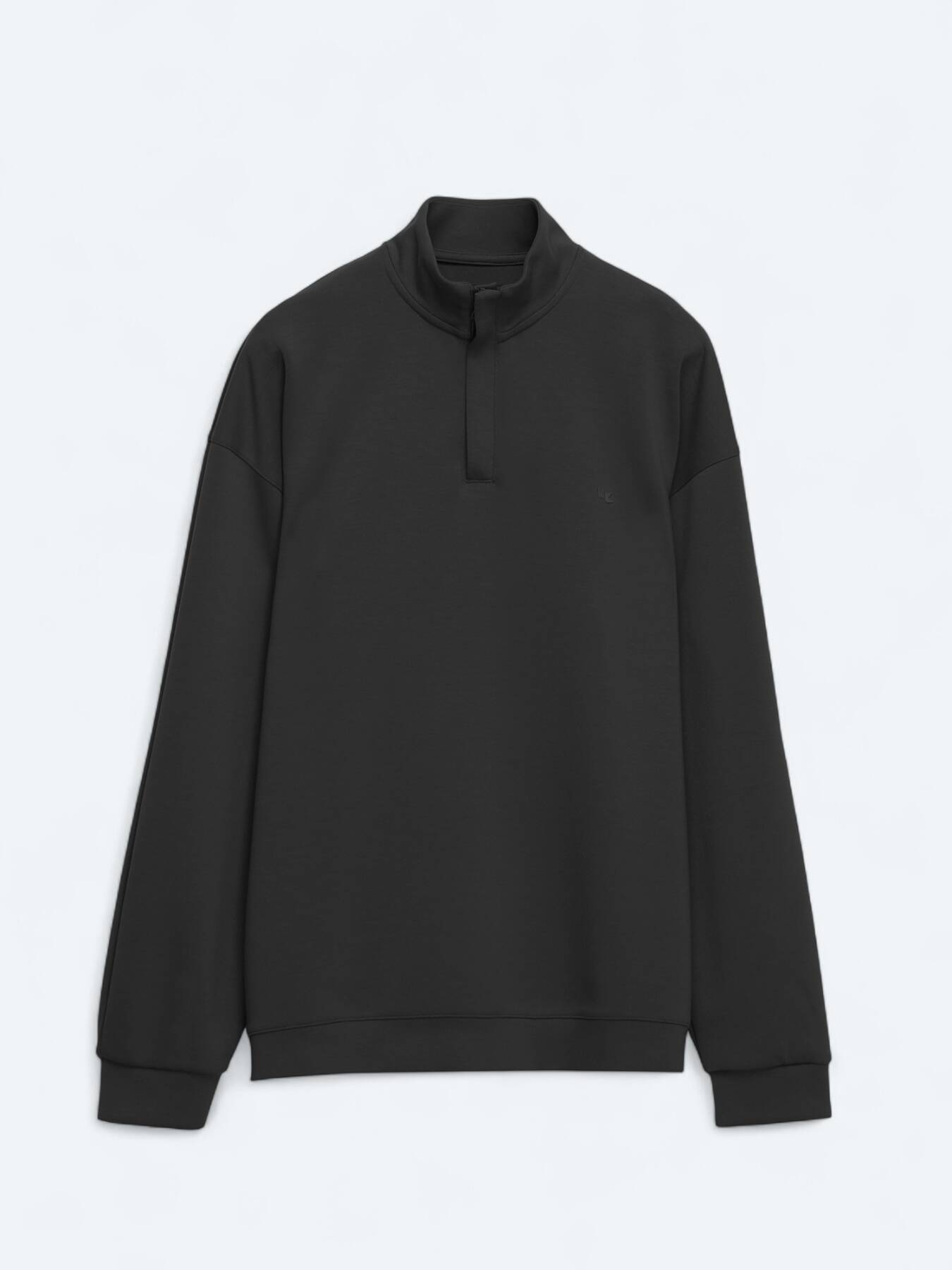 Combining winter comfort with elegance in the Re-Charge collection, this tile sweatshirt offers a modern look with its stand-up collar detail.
