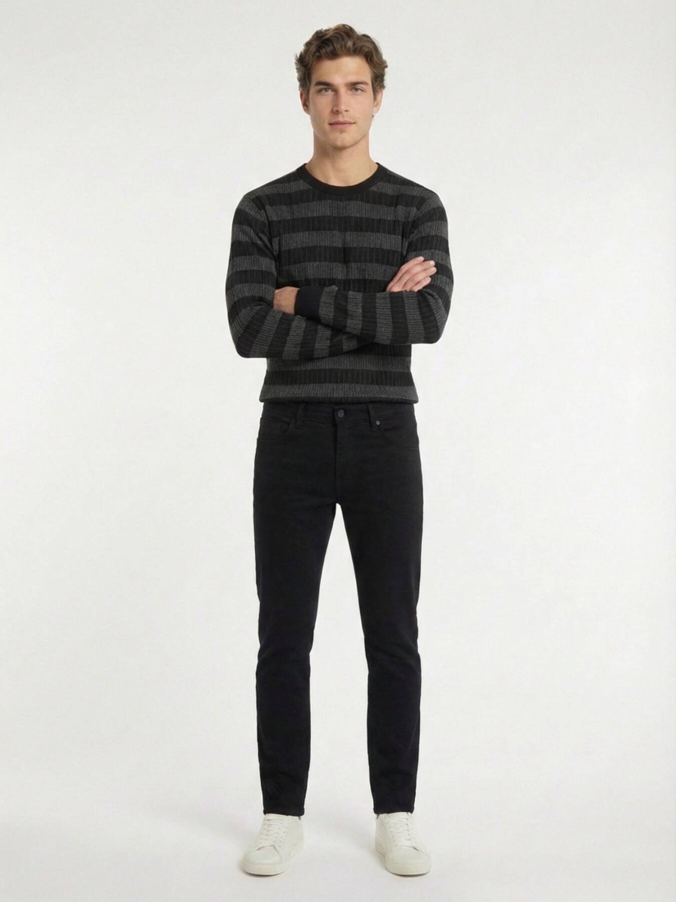 Model: Height: 188 cm, Chest: 100 cm, Waist: 79 cm, Hips: 96 cm, Size: 32