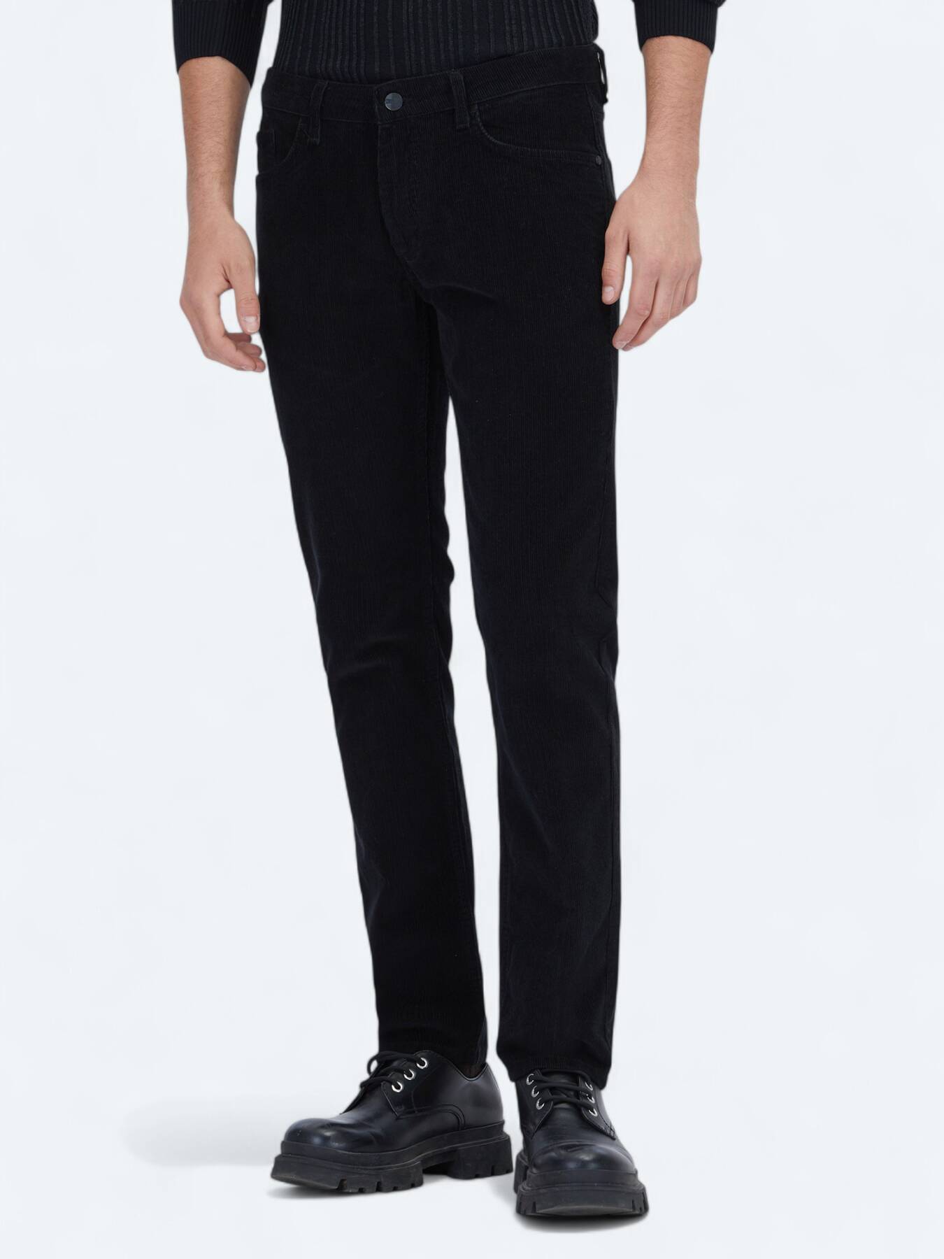 Notify me when its in stockThese black slim fit trousers are a staple in every man's modern wardrobe with their minimalist design and high comfort.