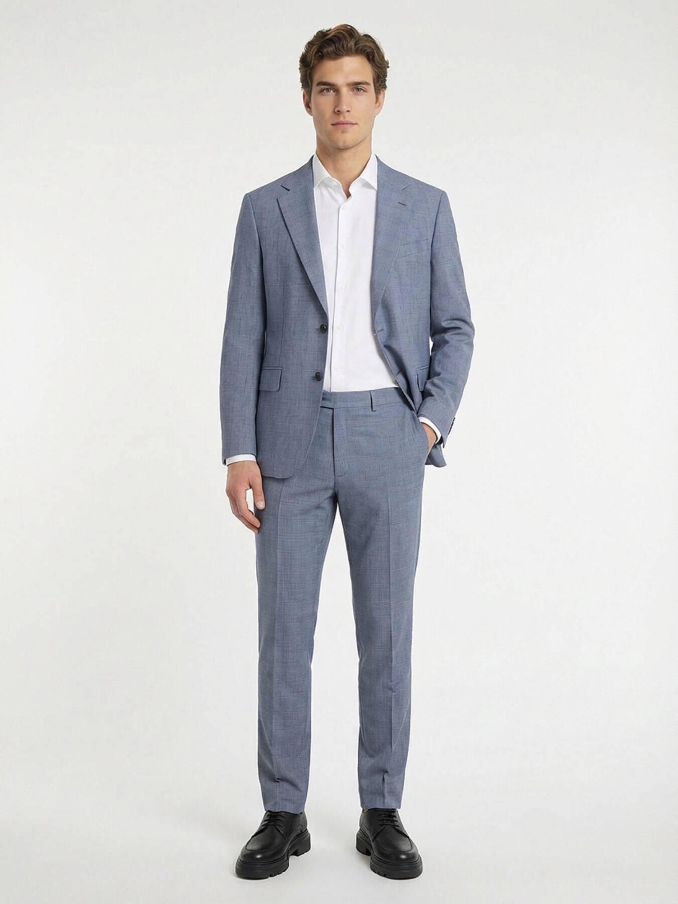 Notify me when its in stockThe blue color plain modern fit men's suit provides a balanced and stylish fit to the body with its modern fit cut. While it offers comfort with its half-lined inner structure, its simple design can be easily combined with different shirts and ties.