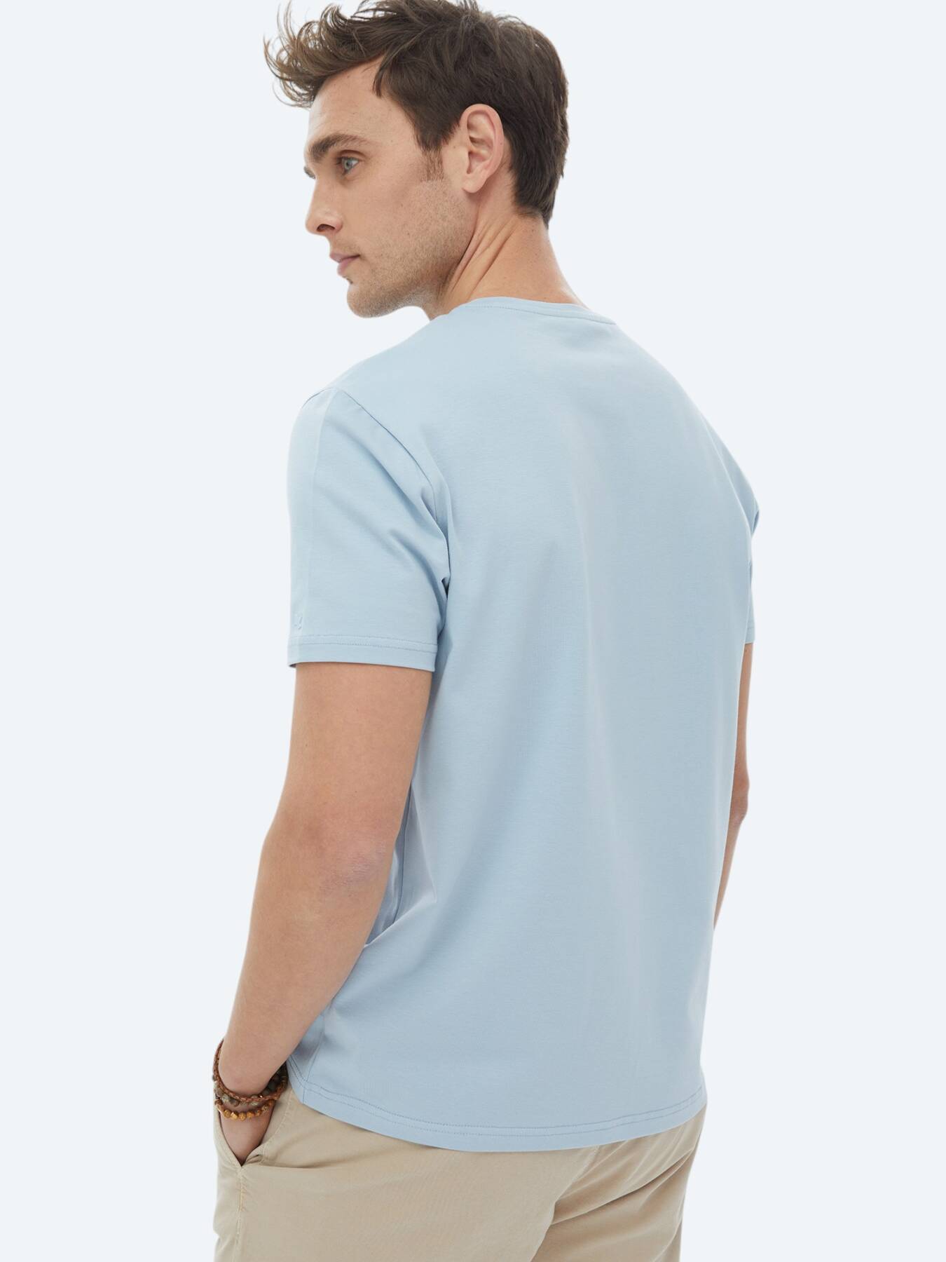 Blue Plain Crew Neck Cotton Blended T-Shirt