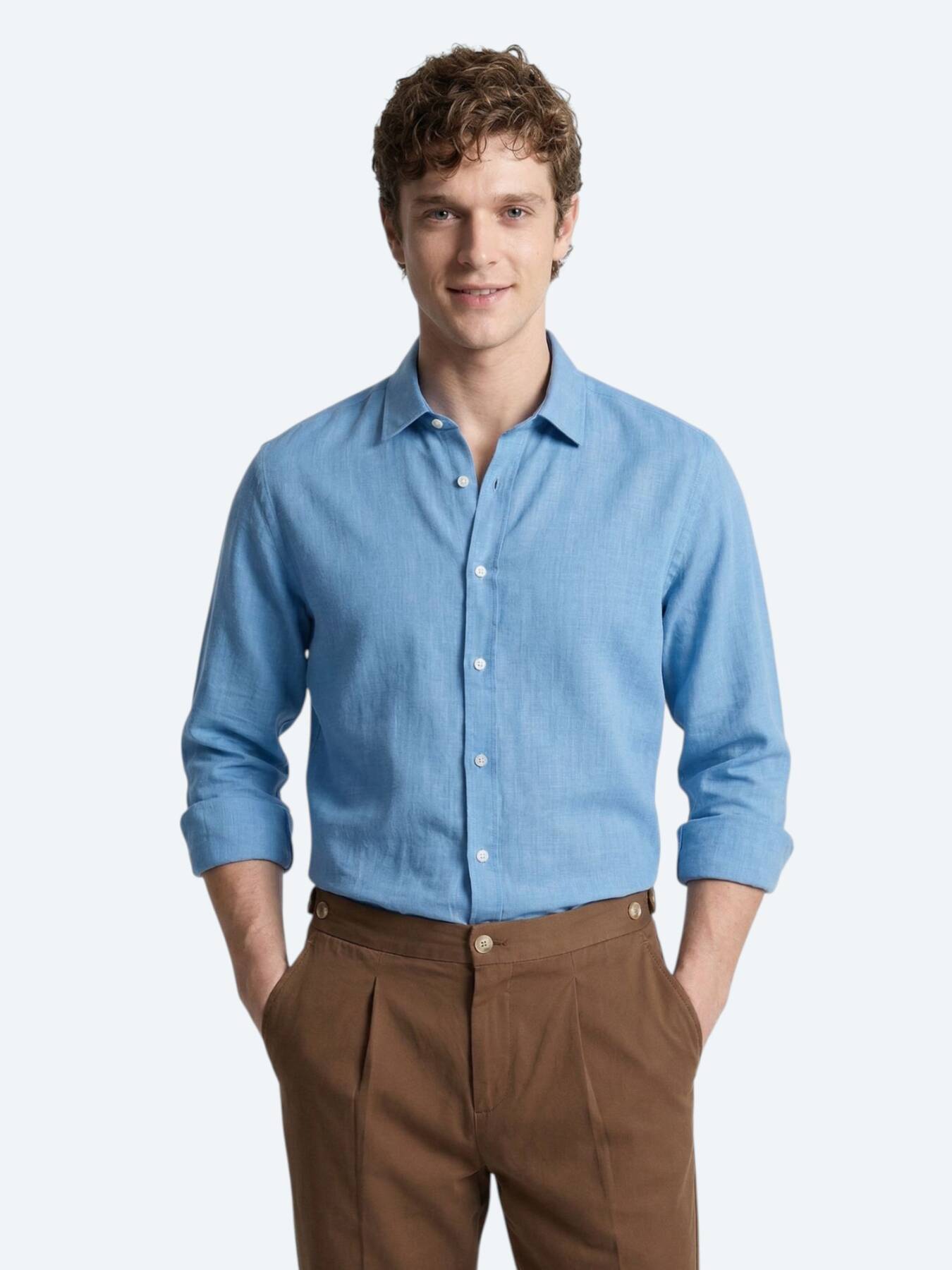 Blue Plain Regular Fit Weaving Casual 100% Cotton Shirt