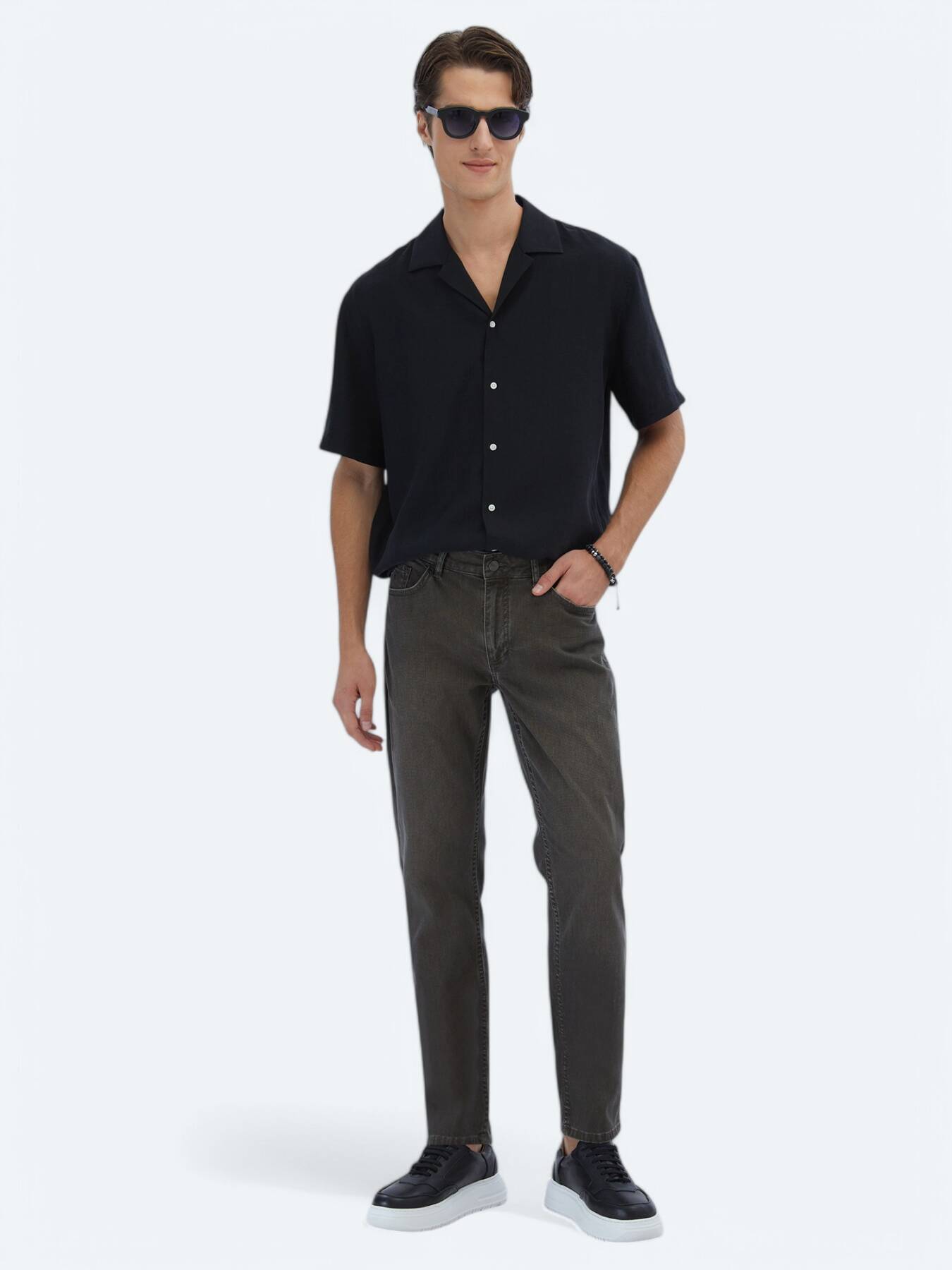 Notify me when its in stockBrown denim trousers offer both comfortable and flexible use with their 99% Cotton blend. Its slim fit fit creates a form-fitting silhouette, while its 5-pocket design maintains the classic denim spirit. It is an indispensable complement to casual style.
