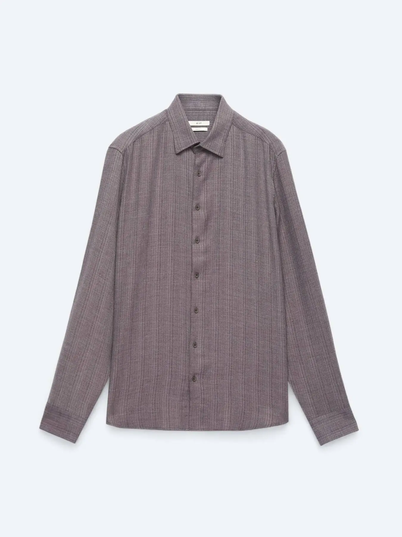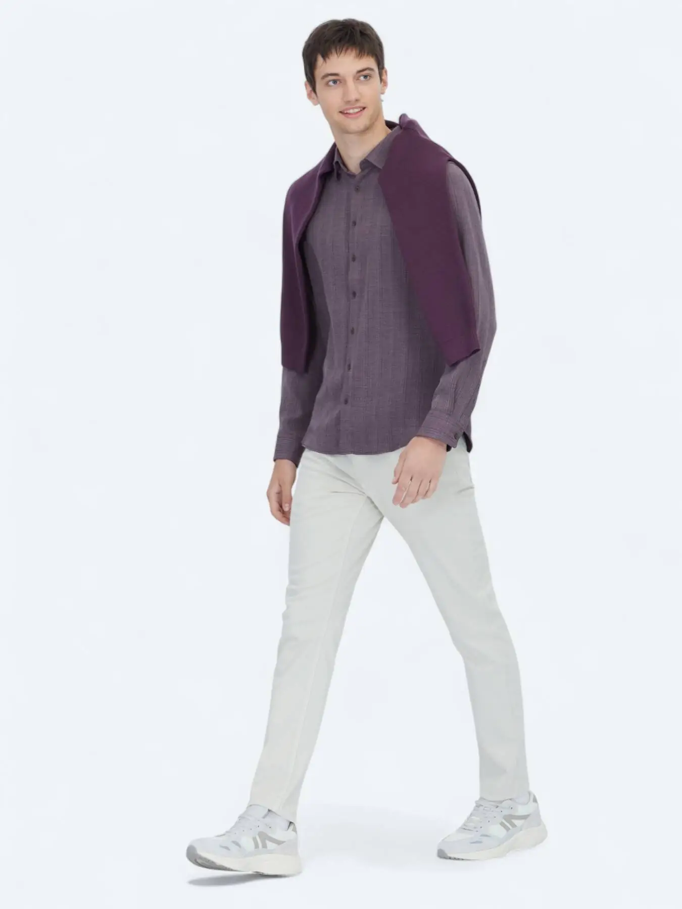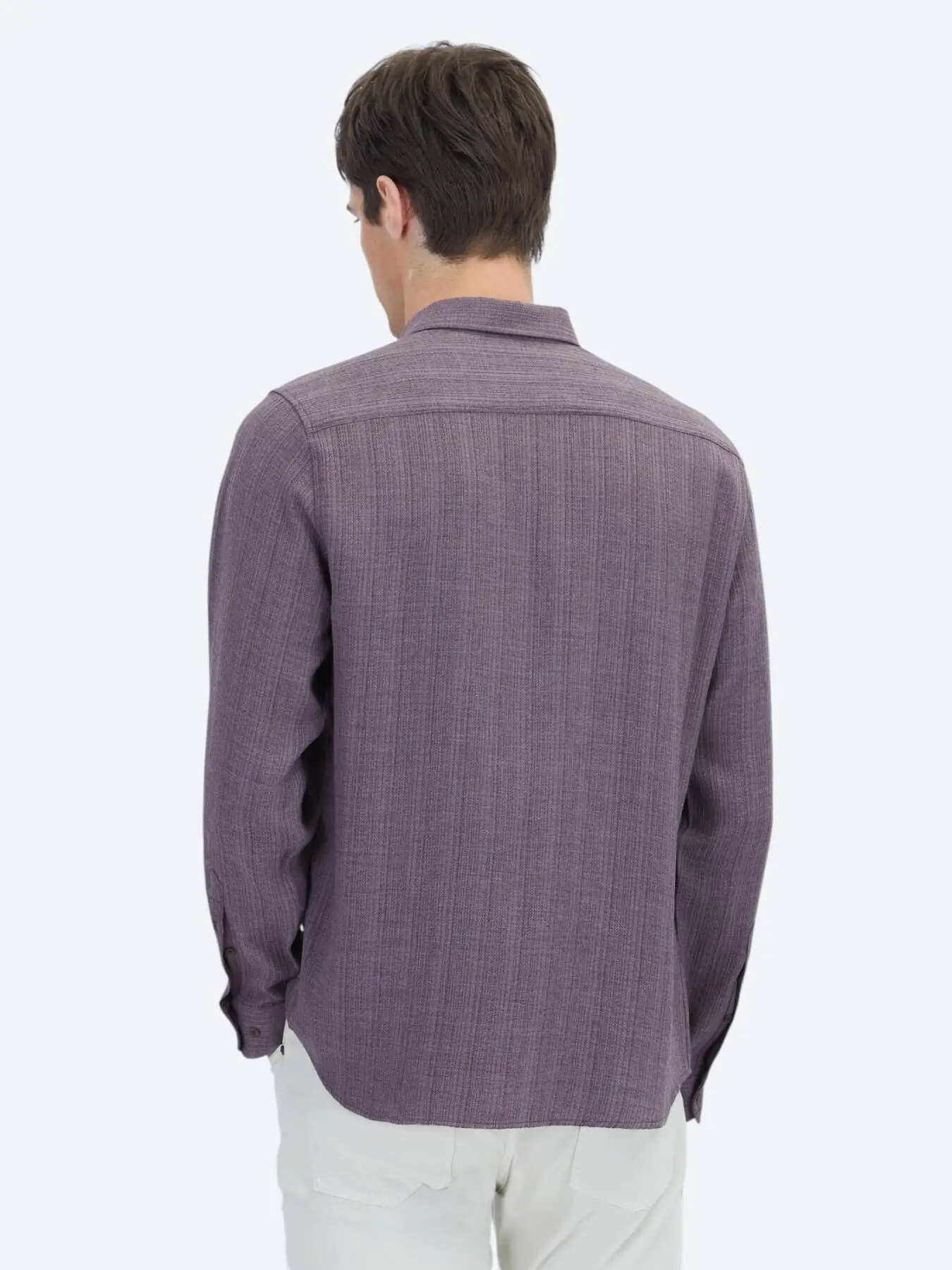 Damson Color Striped Regular Fit Weaving Casual Shirt