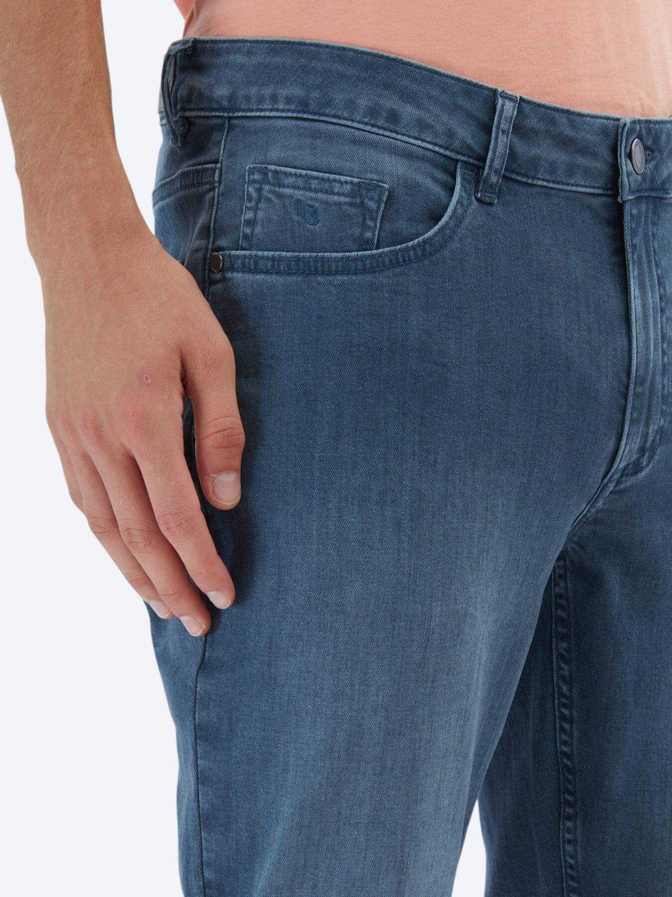 Its blend of 98% cotton and 2% elastane allows for flexibility and freedom of movement, while its slim fit pattern creates a sleek silhouette that fits the form. Its 5-pocket design completes the classic jean look.