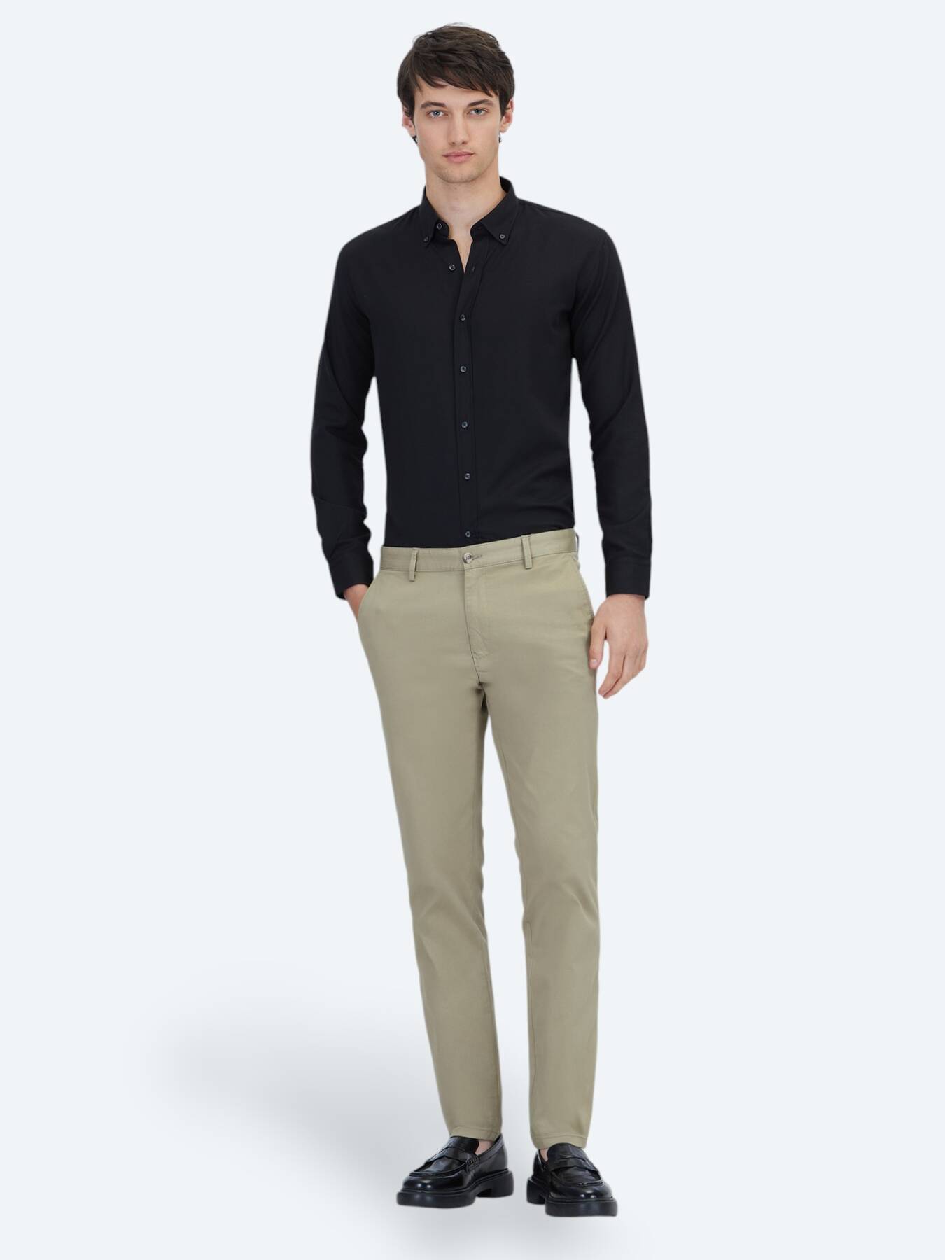 Yumuşak tonuyla hem sade hem de modern bir duruş sergileyen bu pantolon, %97 pamuk ve %3 elastan karışımıyla gün boyu hareket özgürlüğü sunar. Regular fit kalıbı sayesinde vücuda dengeli oturur, yaz aylarında hafif dokusuyla öne çıkar.