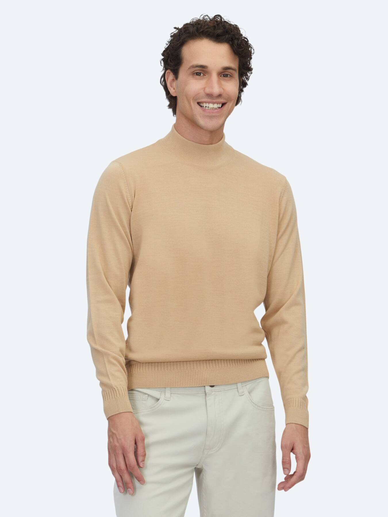 Deve Tüyü Yarım Balıkçı Yaka Jakarlı Yün Karışımlı Triko Kazak