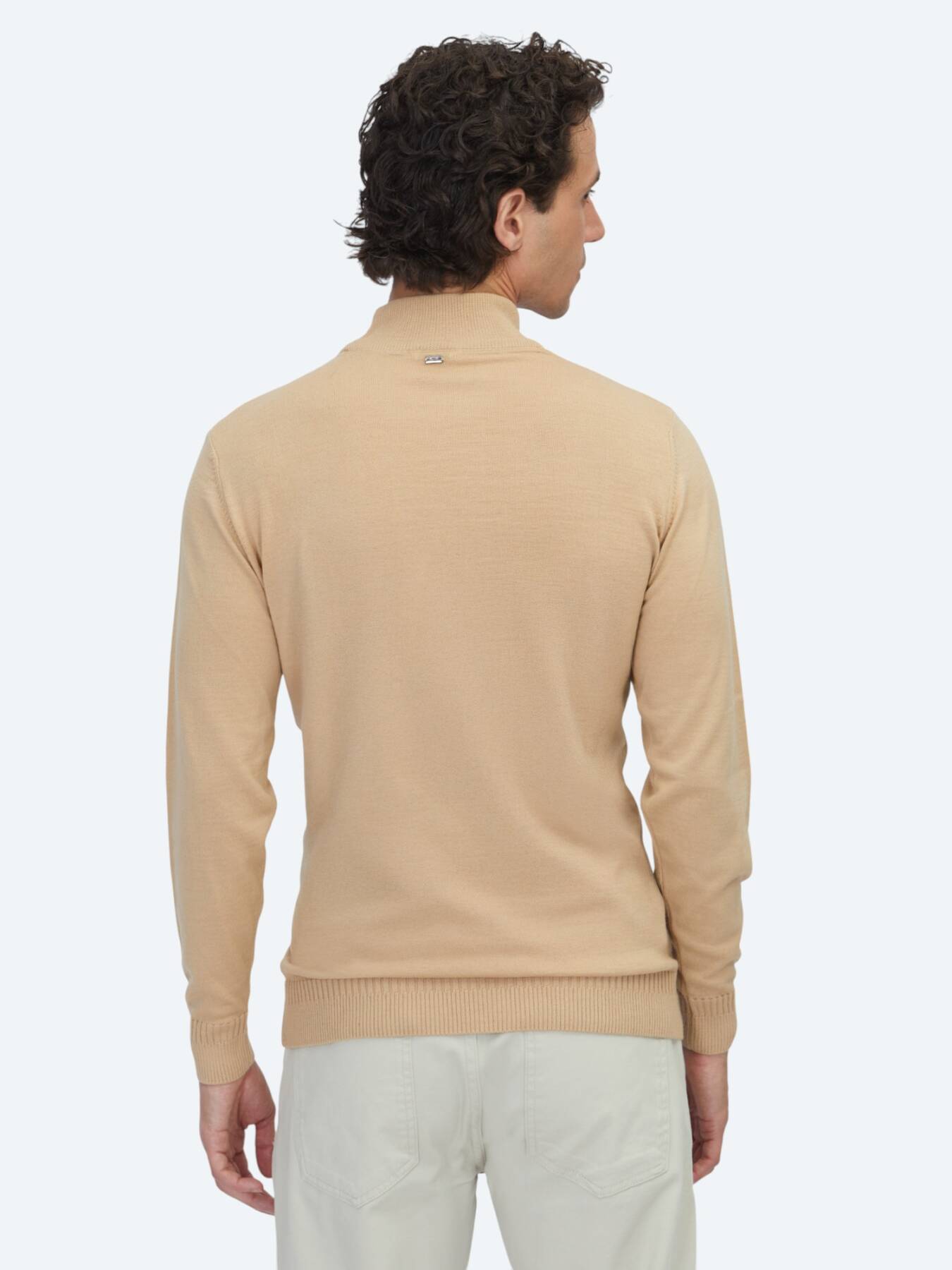 Jakarlı yarım balıkçı yaka triko, yün ve akriliğin dengesini sunar.