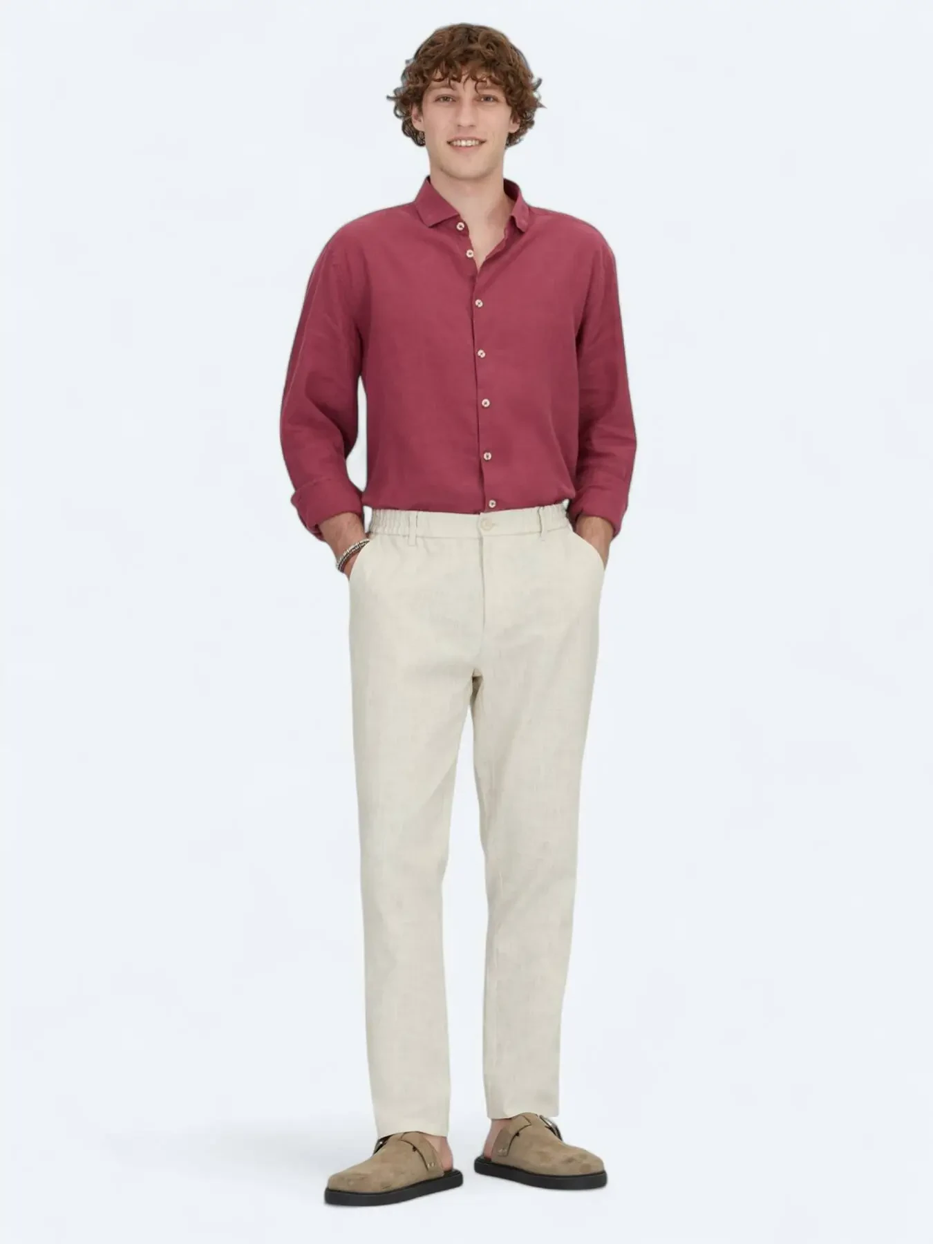 Ekru Dokuma Jogging Fit Casual Pamuk Karışımlı Pantolon